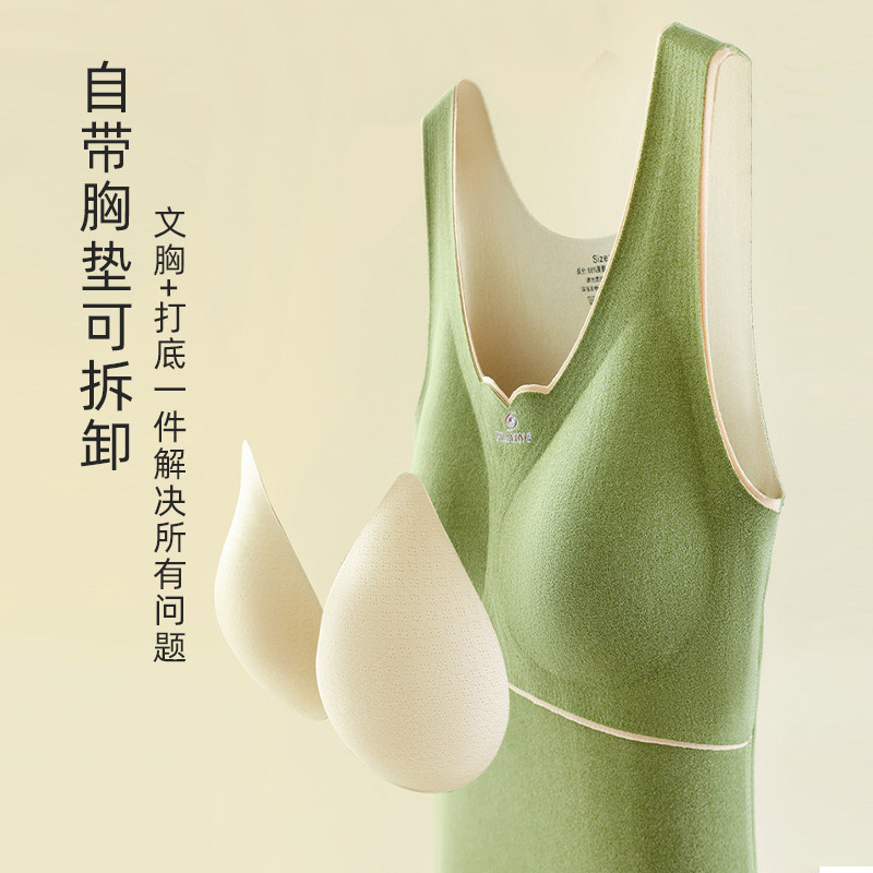 Duvet Warm Vest Woman Inside Wear With Chest Cushion Plus Suede Winter Warm Lady Plastic Body Slim Fit Without Mark