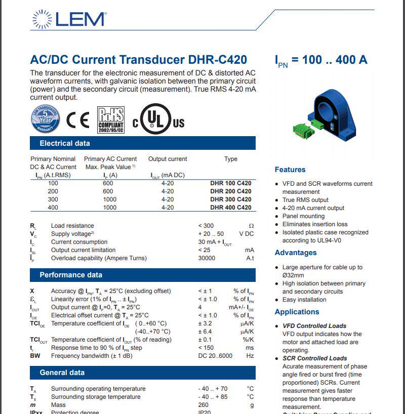 DHR400C420 Original LEM Lem Current Sensor 400A Open Loop Hall Effect Module