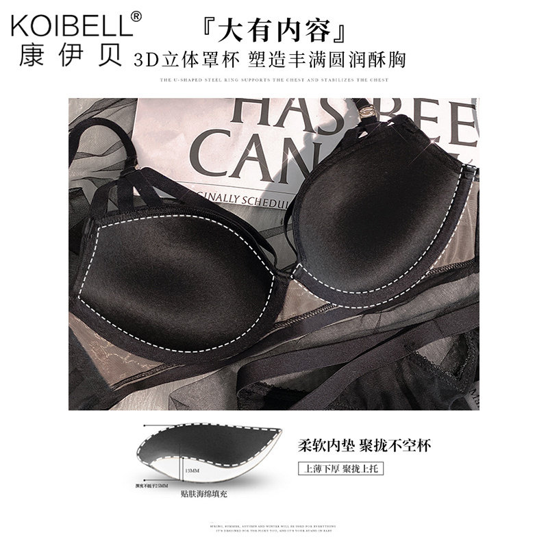 KOIBELL Autumn Black Sexy Lingerie Women's Small Breasts Gathering Bras Anti-sagging Top Supporting Large Underwear Set - Taobao