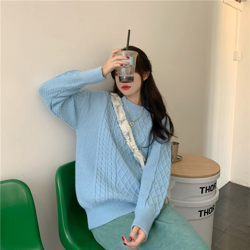 Blue - haired sweater is loose to wear a new gentle wearing sweater in autumn and winter 2022