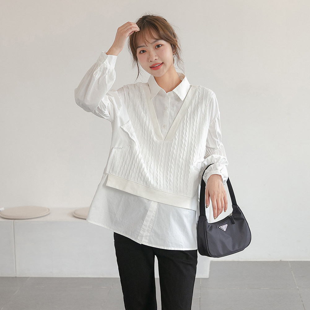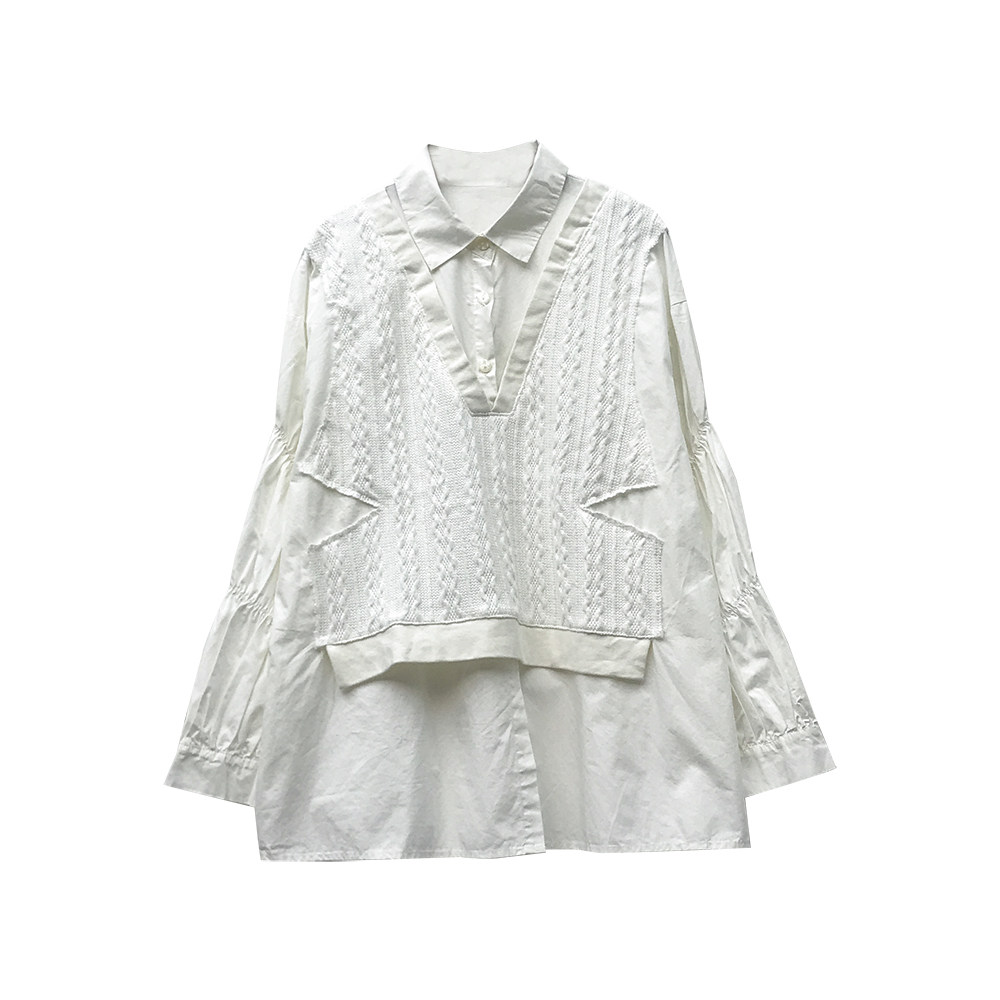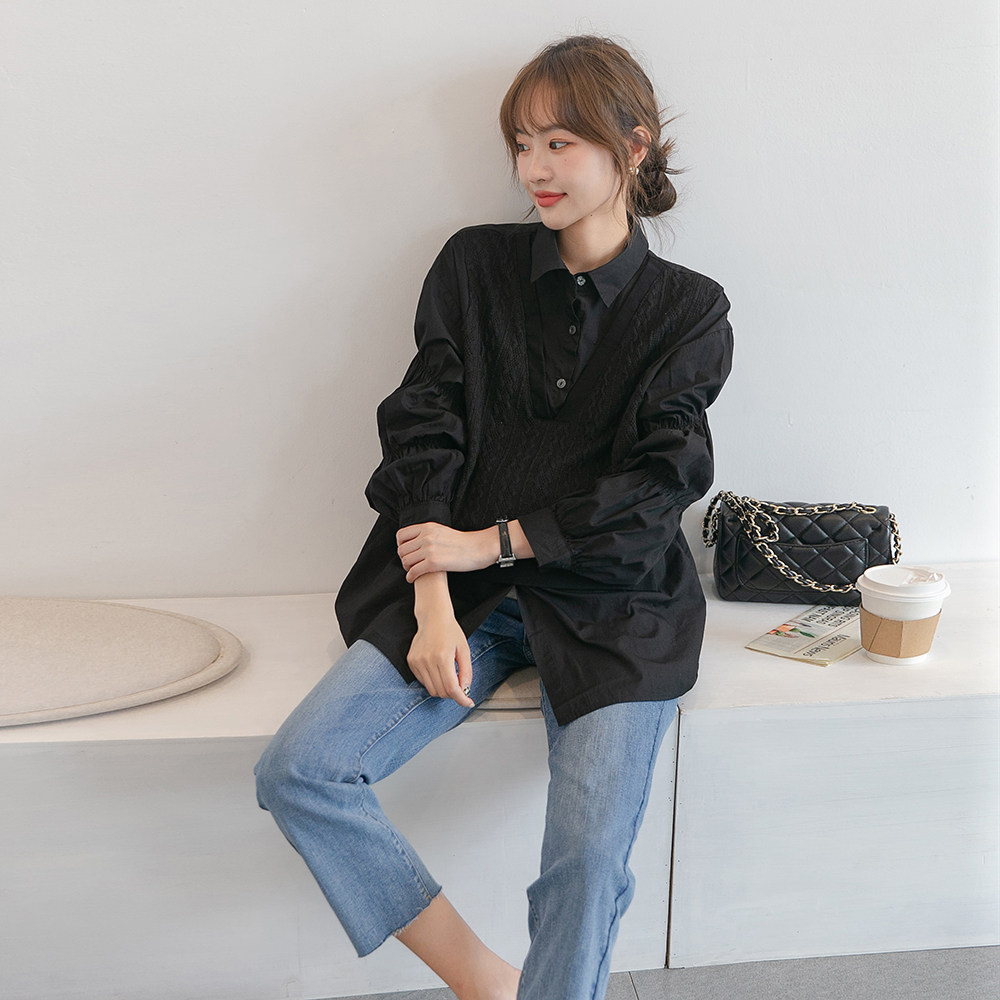 Korean Senior Sensation ~ Pregnant Woman Shirt Spring Autumn Clothing Fashion Small Subknit Horse Chia Splicing White Shirt Jacket