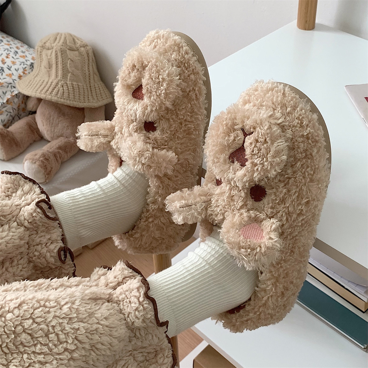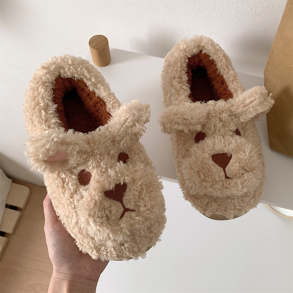 Rice white khaki dark brown half bag with khaki half bag with rice white half bag with dark brown blush bear Baotou rice white blush bear Baotou brown teddy dog Baotou