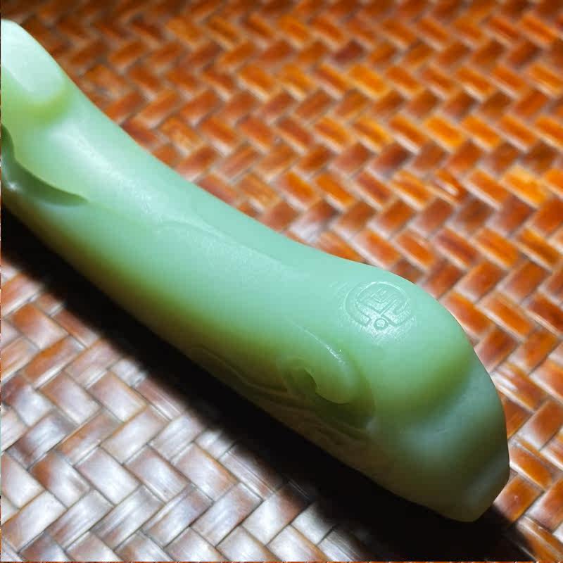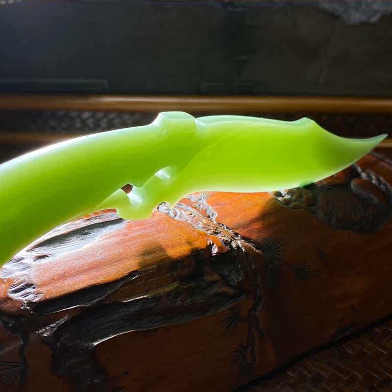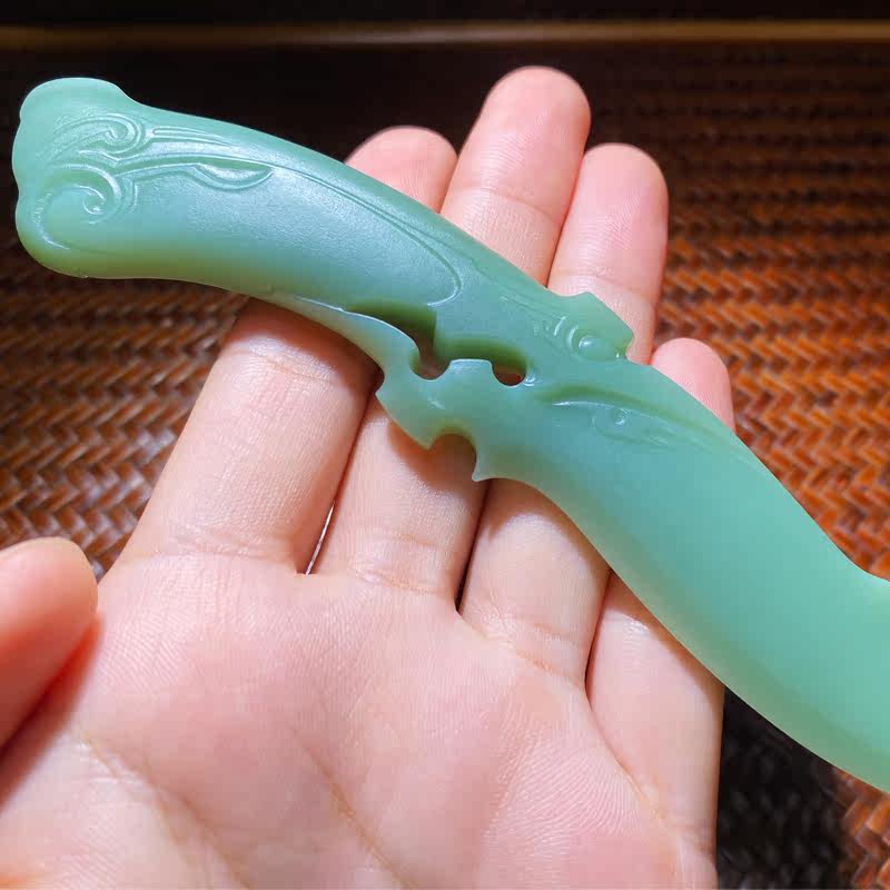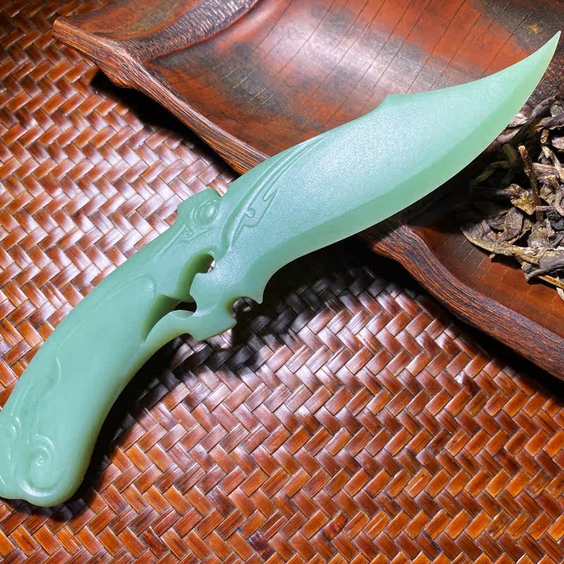Natural Xinjiang Hetian jade jasper tea knife stone art porcelain green delicate antique dragon-shaped duck egg white spinach green