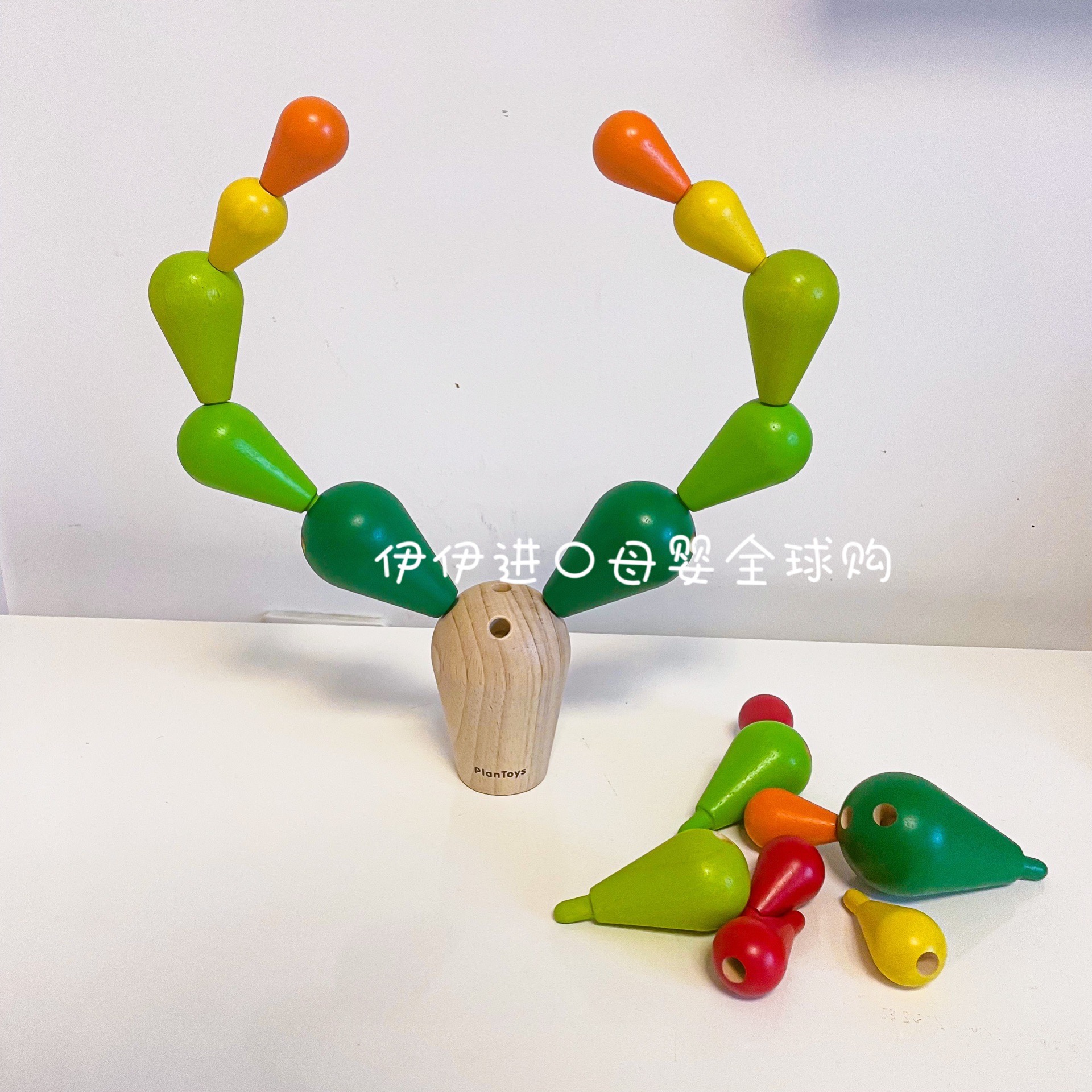Imported PlanToys wooden building blocks toys children's desktop parent-child game balance cactus fine movements