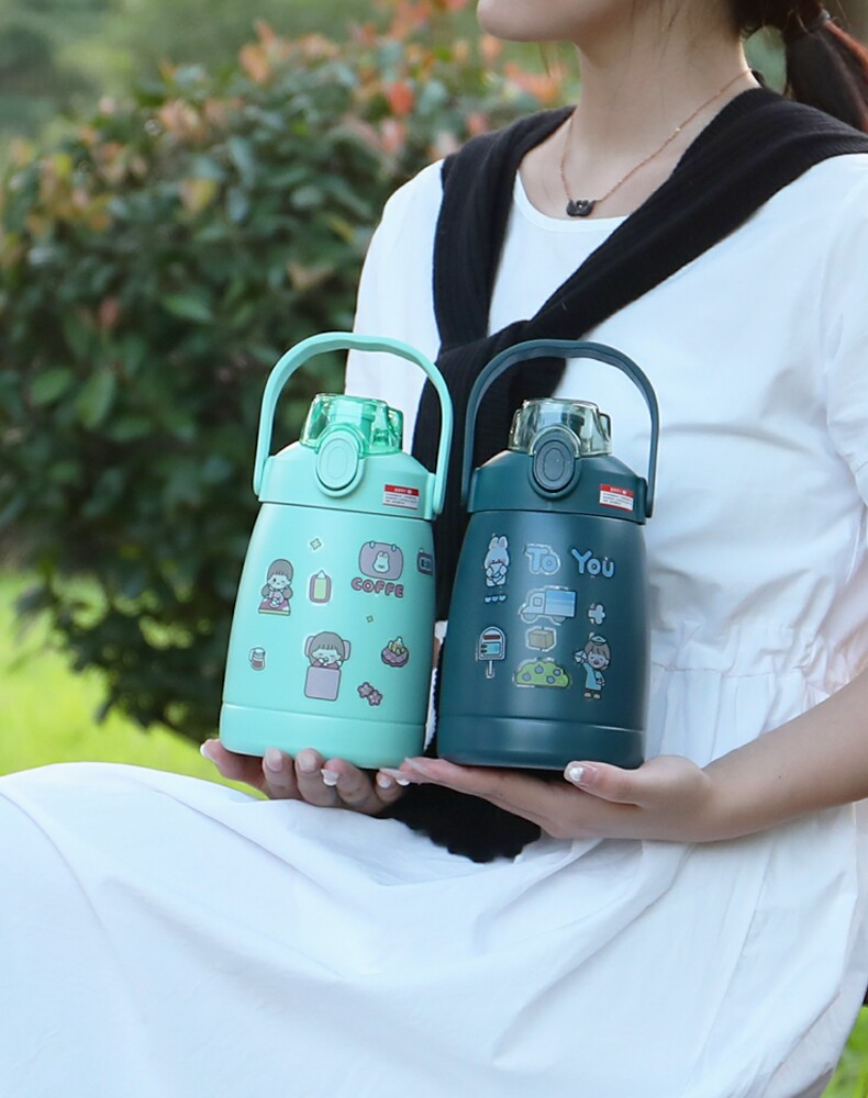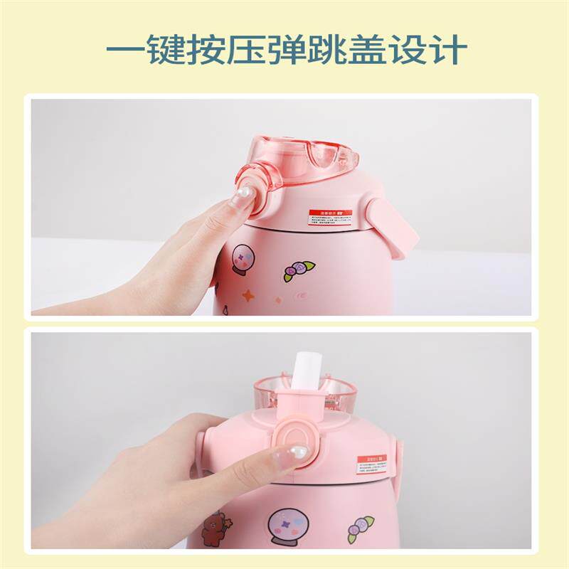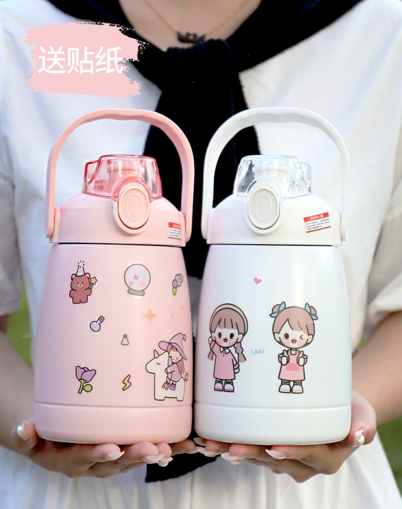 Large-capacity double drink with straw belly mug female cartoon portable student kettle cute net red water cup anti-fall