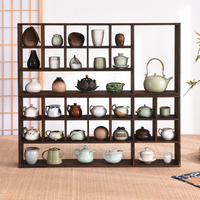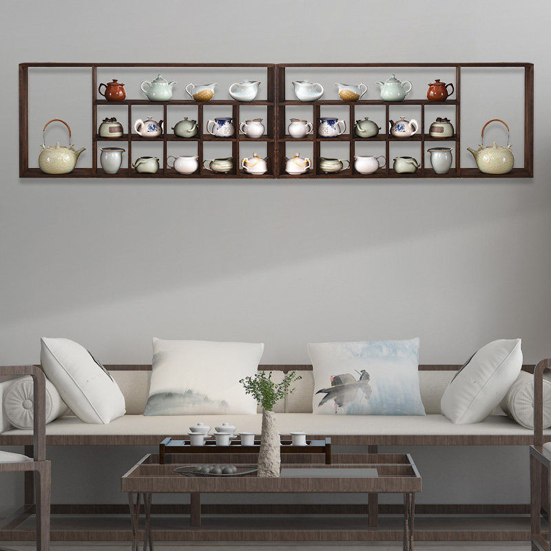 Solid wood wall hanging rack combination wall hanging Bogu rack tea set tea pot tea cup storage shelf tea room spare parts