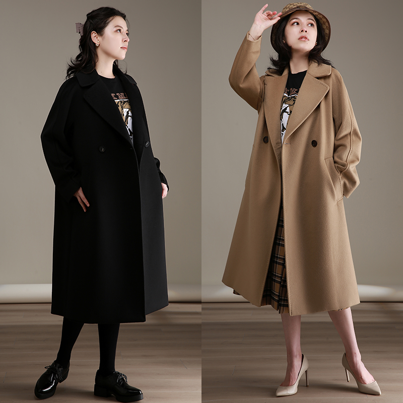 NZ Herben Wind High-end Camel Wool Cashmere Big Coat Woman Mid-Length Version Loose Outline Shaped Horn Button Hair Coat Winter