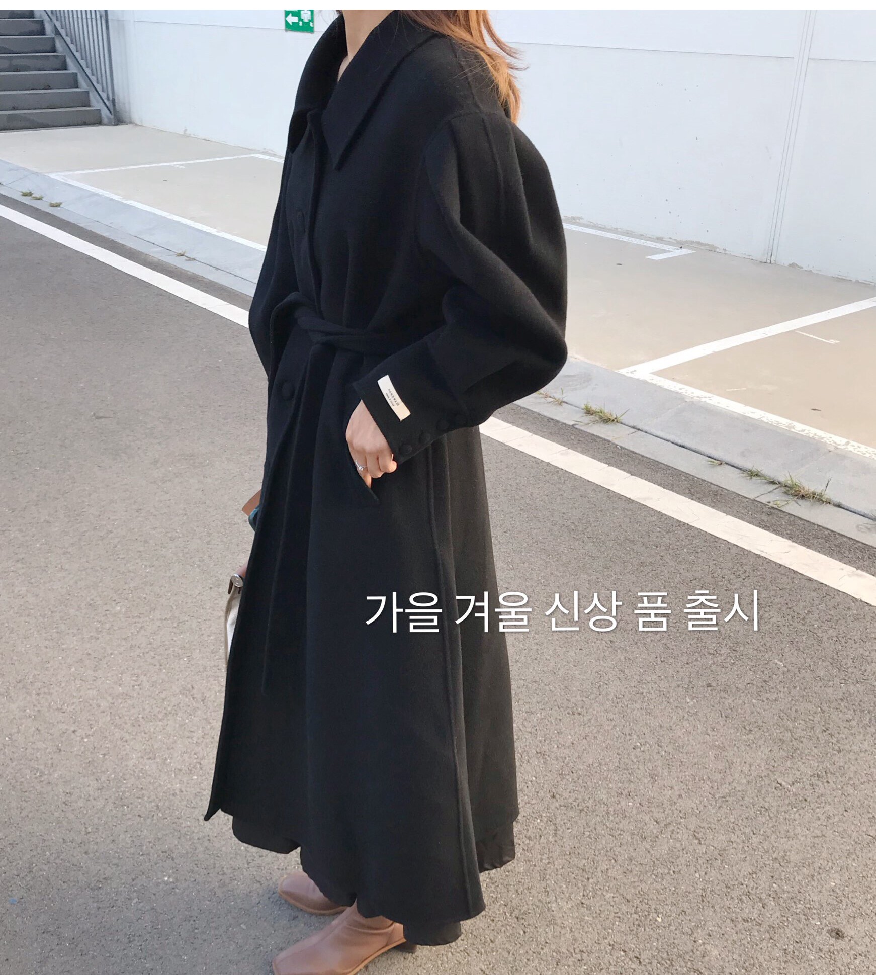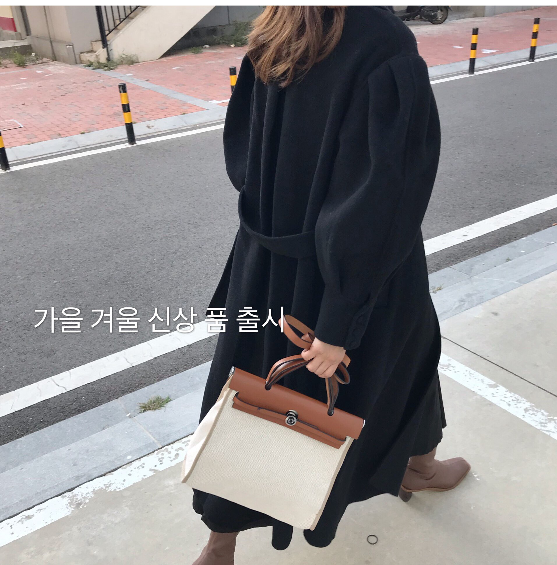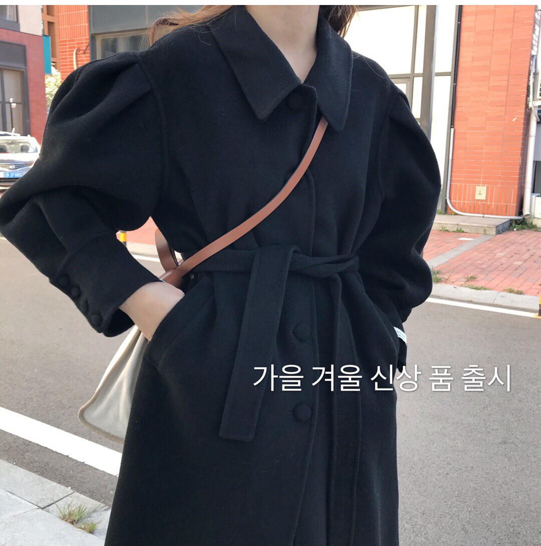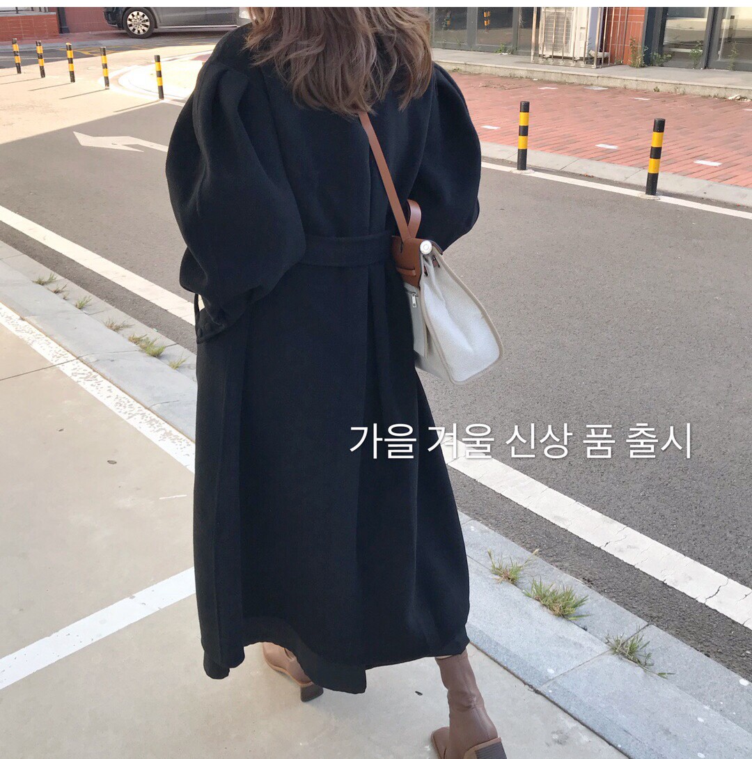Puff sleeves double-sided cashmere coat women's long version 2021 new loose bag buckle hand-stitched double-sided tweed coat