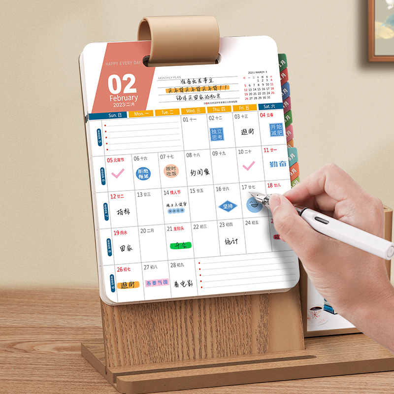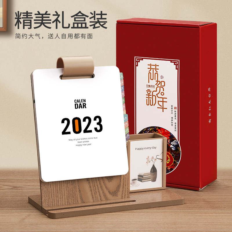 2023 desk calendar rabbit year calendar new business wooden creative desktop decoration 2022 to plan this month calendar custom enterprise office simple pen holder notepad small desk calendar logo customization