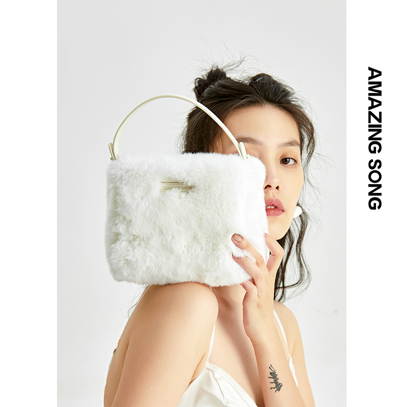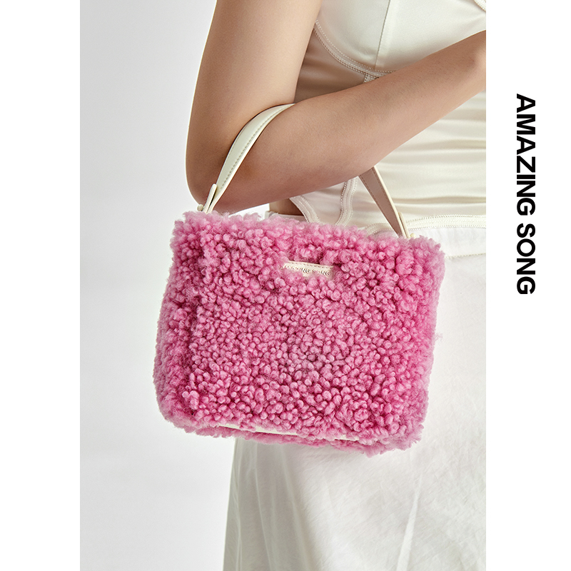 Amazing Song bag women's spring and summer new niche design handbag fur bento shoulder messenger bag