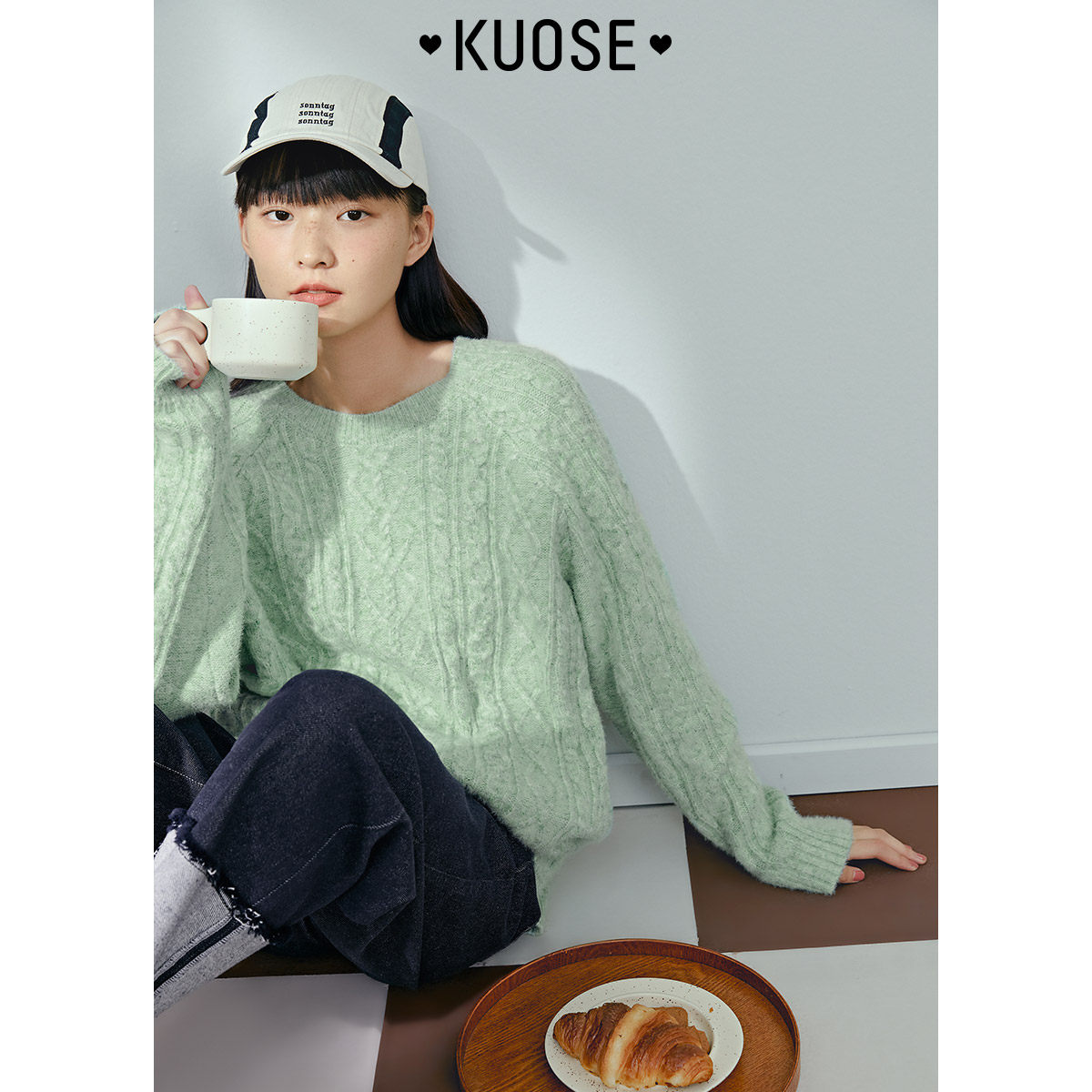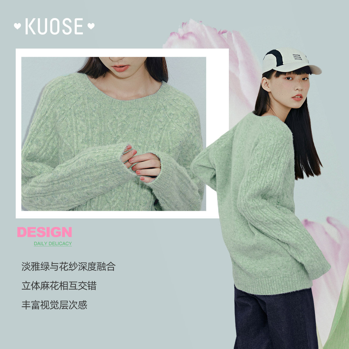 Wide color round neck twist sweater women's 2021 new autumn and winter loose Japanese lazy style knitted top