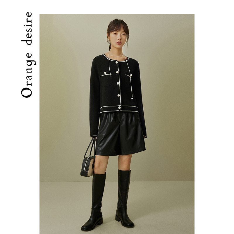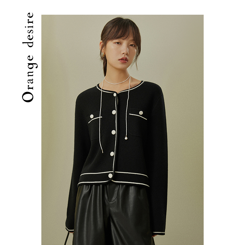orange desre small fragrant wind knit cardiovert jacket woman 2022 spring new sweater loose blouse round collar