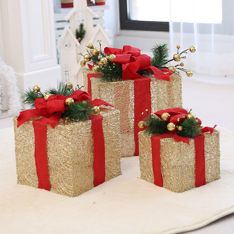 Christmas gift box three-piece set 4S shop celebration window decoration gift bag square exquisite beautiful Chen shelf shopping mall decoration