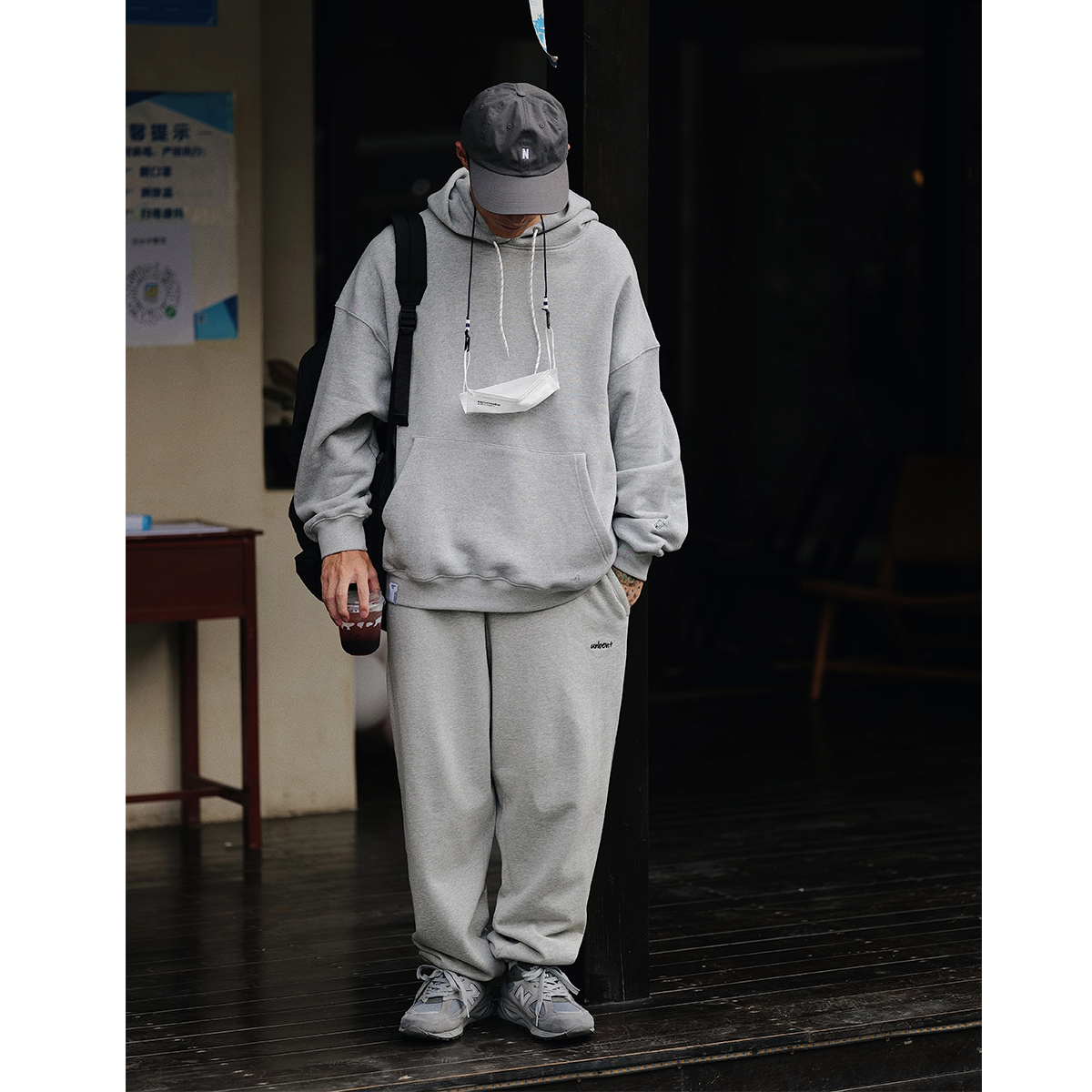 UNBENT 21AW Embroidery pure colored hood sweatshirt day to leisure heavy loose City boy hat
