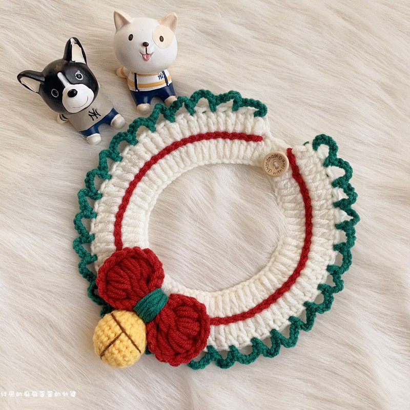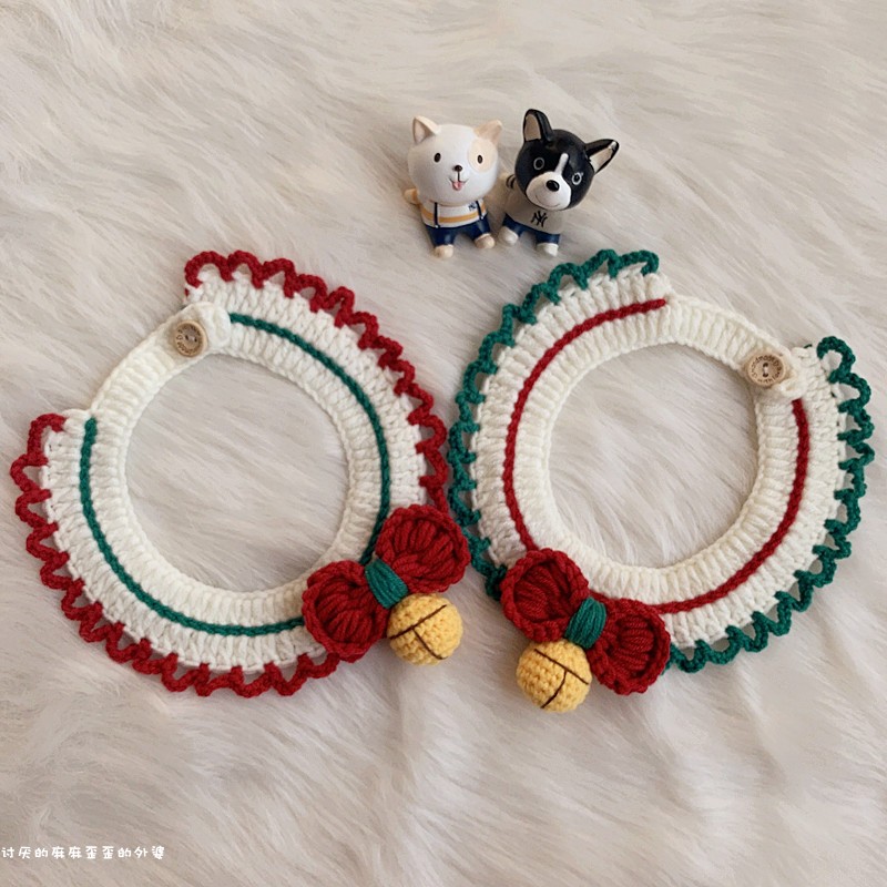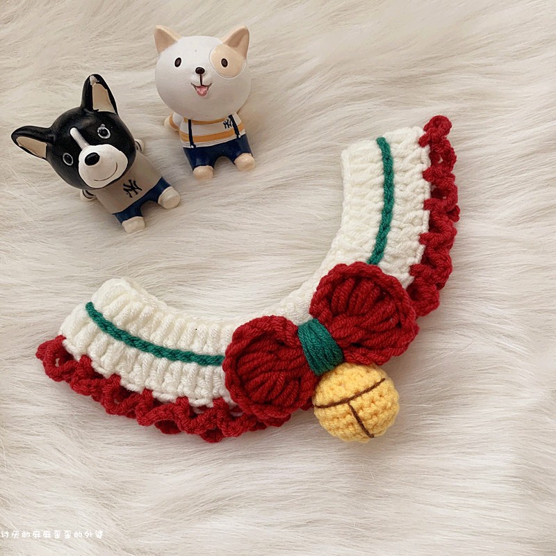 Original cat dog Christmas New Year jewelry knitted collar pet collar wool saliva towel bib bell