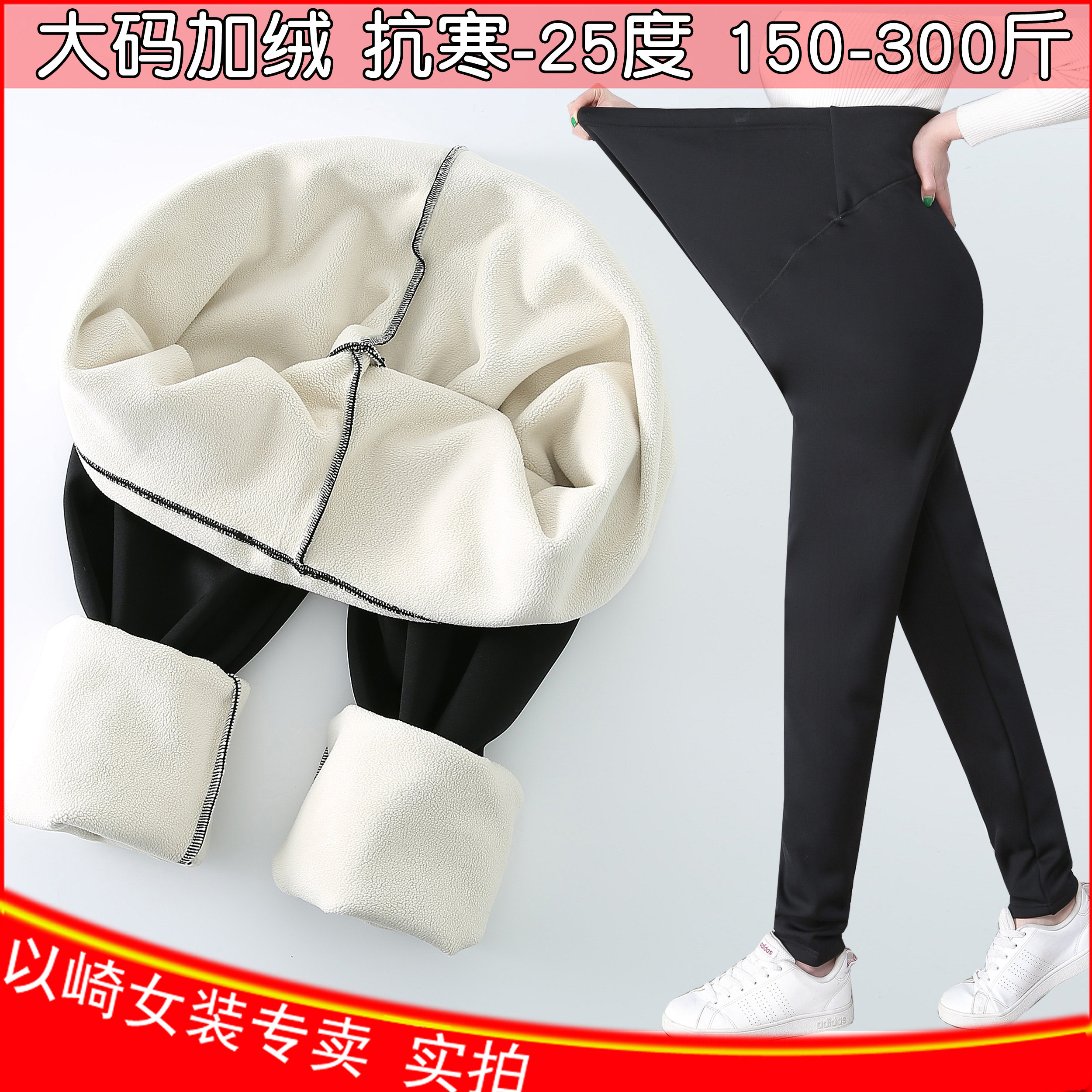 Large size PREGNANT WOMAN INNER LAP PANTS 200-300 CATTY LOOSE OUTSIDE WEARING LONG PANTS AUTUMN WINTER GARNTER THICKENED WARM COTTON PANTS FAT M