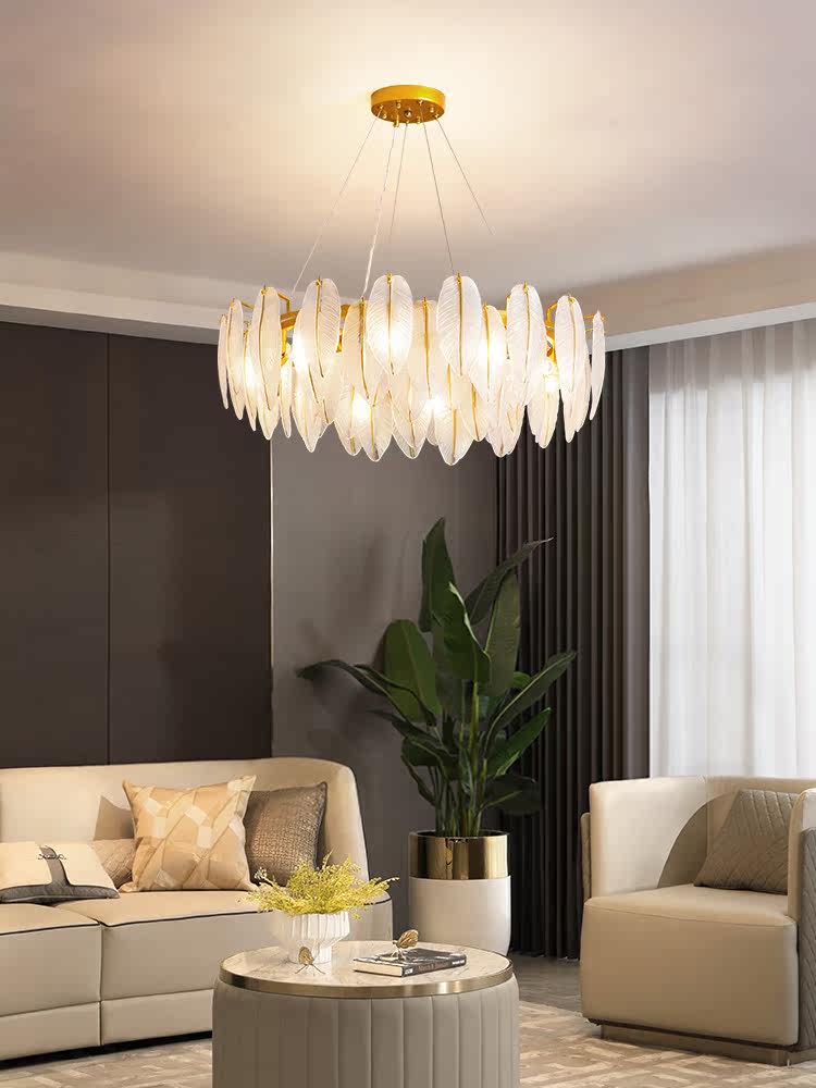 (New Product) After Moon Shadow Modern Light Luxury Living Room Feather Chandelier Dining Room Bedroom Simple Lamps New in 2021