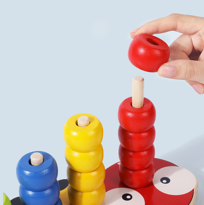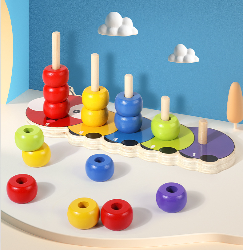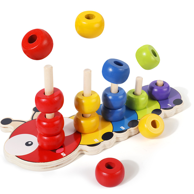 Cross-border wooden caterpillar superimposed sets of columns beaded building blocks kindergarten early education color cognition children assembled Mussen