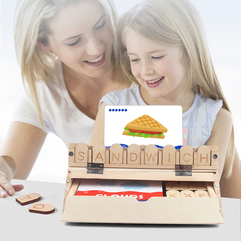 New cross-border wooden spelling word box children's early education English alphabet card pairing puzzle Montessori teaching aids Musen