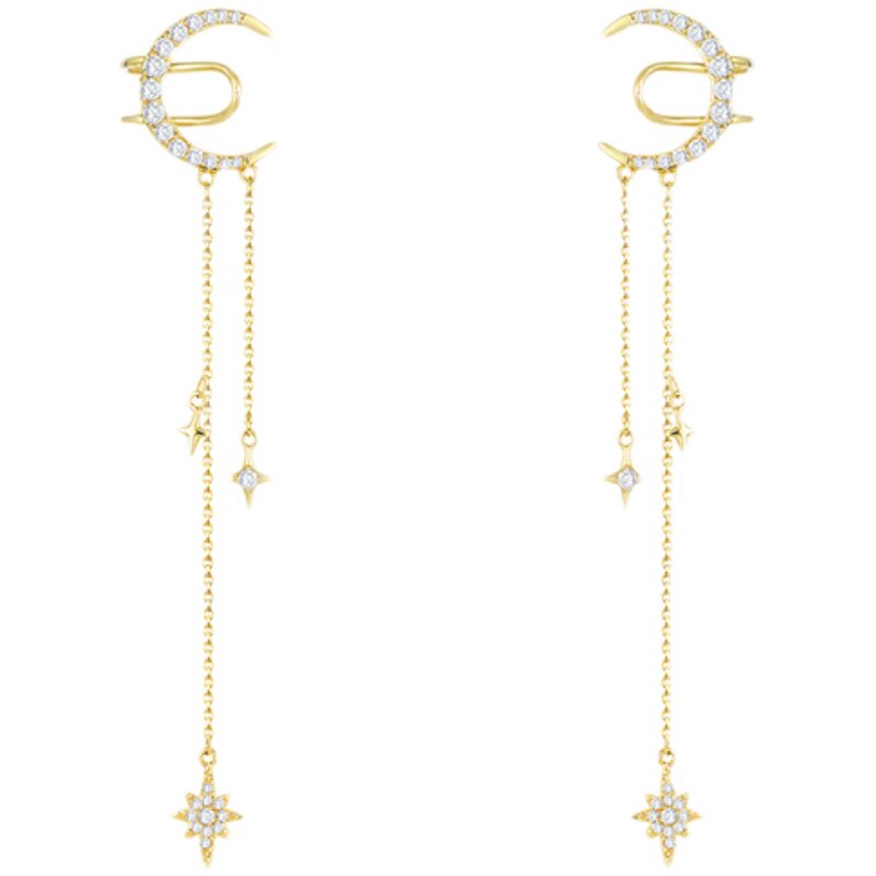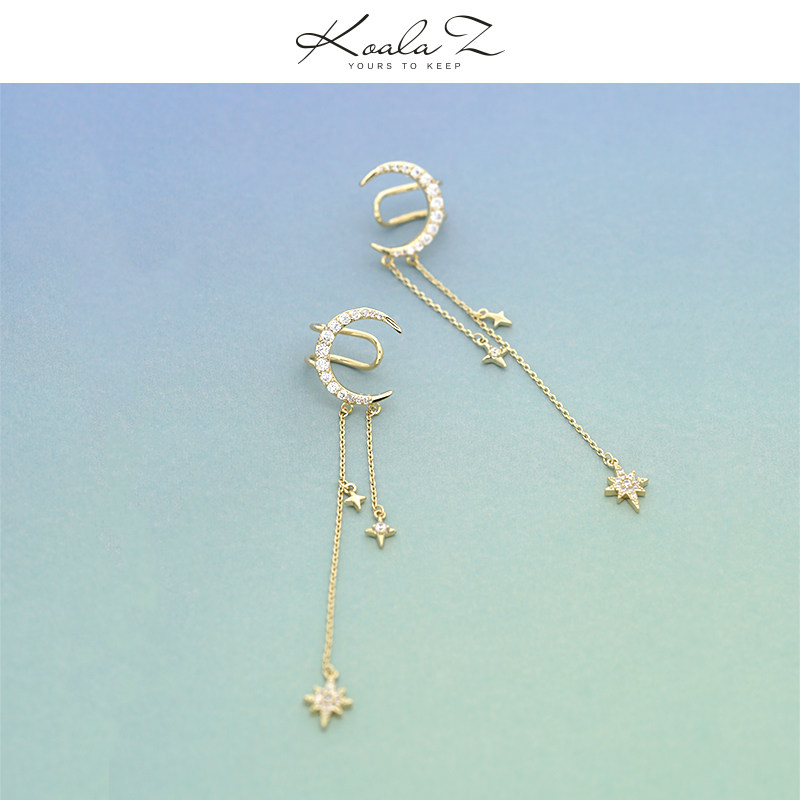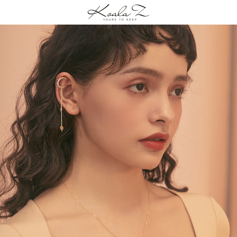Starmoon mythology Romantic Elegant Little Crowddesign Moon Star Chen earrings one-piece ear hanging ear bone clip