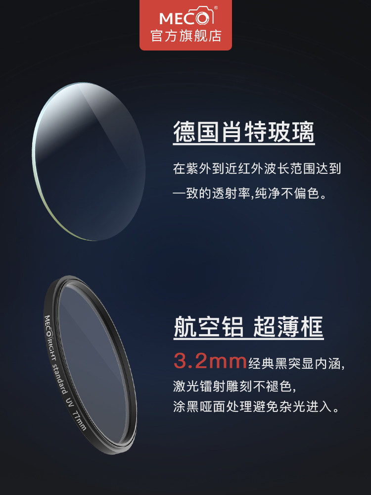 MECO Meigao uv mirror is suitable for Canon Sony Nikon Fuji micro-SLR camera lens protective mirror 40 5 43 49 52 55 58 62 67 72 7