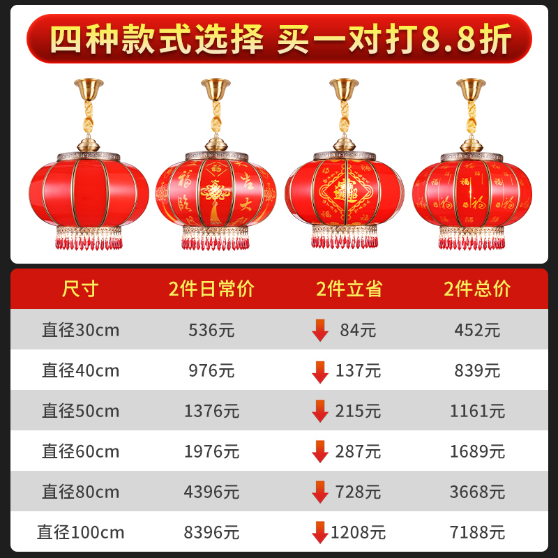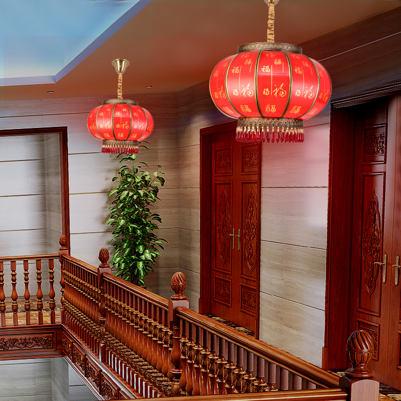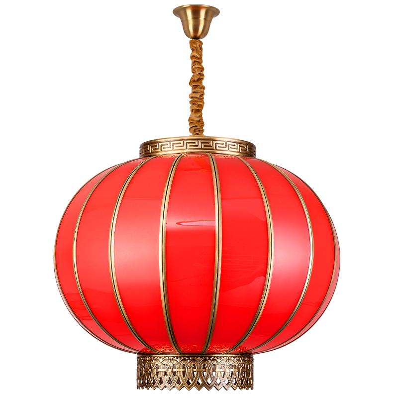 Chinese Fu Characters Full Copper Outdoor Waterproof Large Red Glass Lantern New Year Festive Villa Balcony Courtyard Gate Chandelia