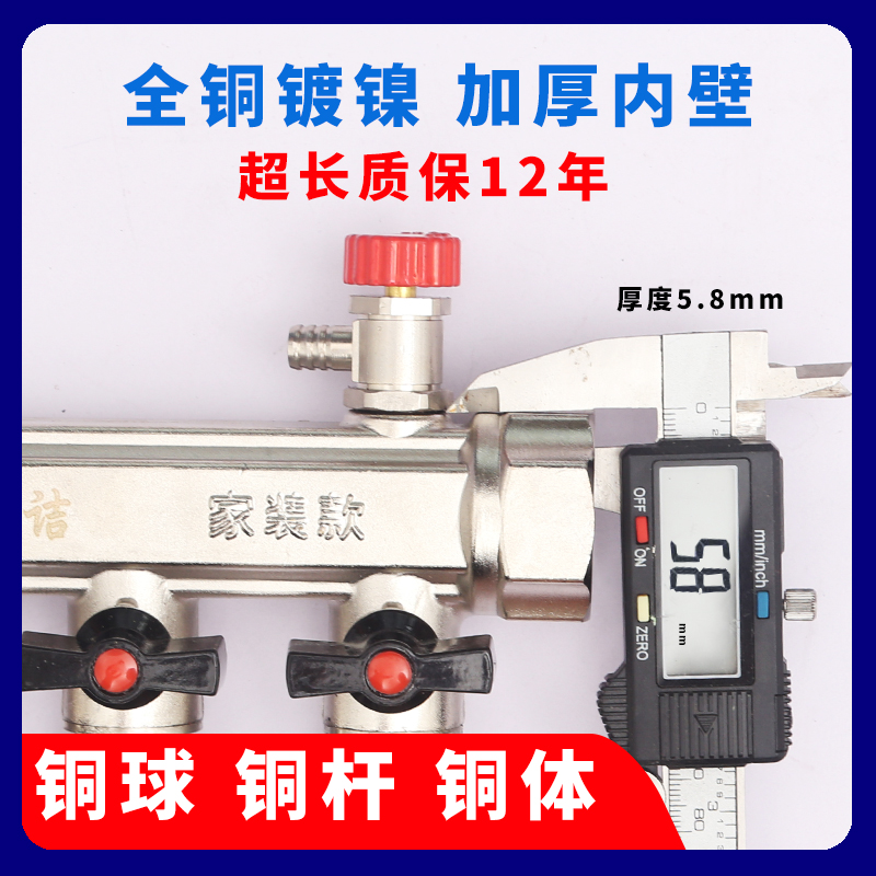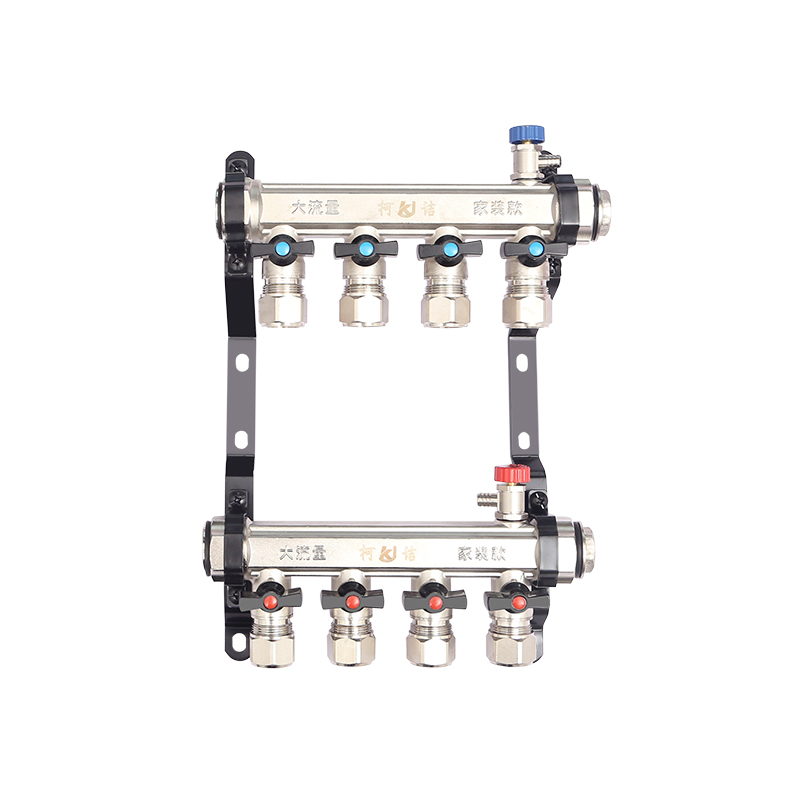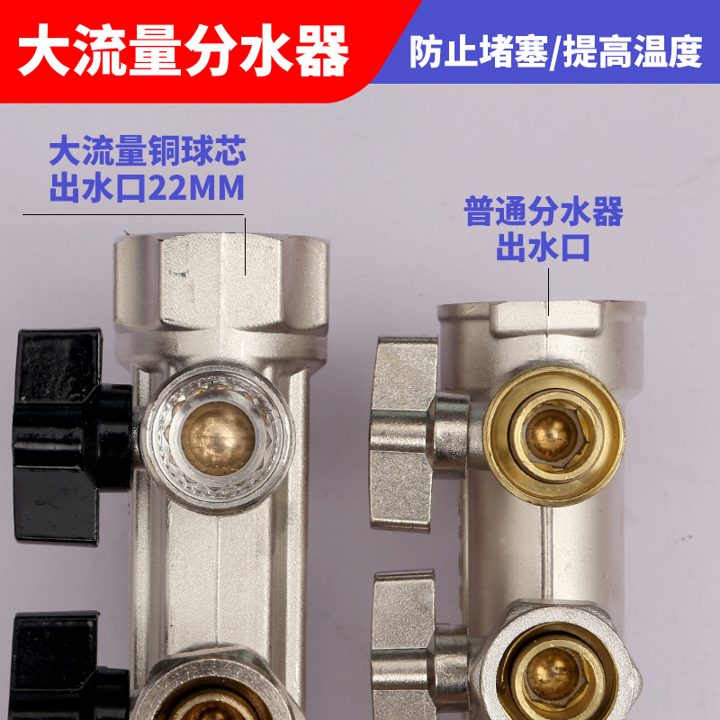 All copper large flow floor heating water separator floor heating household geothermal water separator four-way full set of geothermal pipe water separator