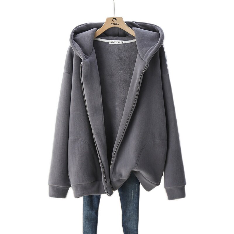 Fat MM large 200 pounds plus thicker sweater woman autumn and winter loose middle - long hat - coat tide