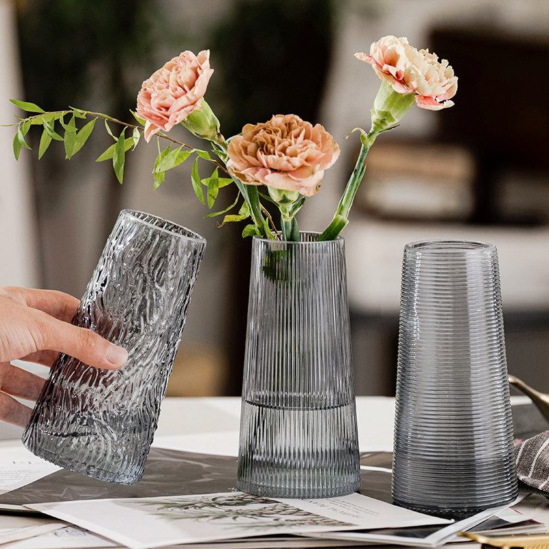 Simple desktop flower arrangement small vase decoration glass embossed transparent hydroponic flowers sunflower living room table decoration