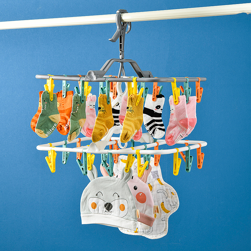 Folding hanger drying rack multi-clip household drying socks artifact student dormitory with seamless multi-functional socks drying rack