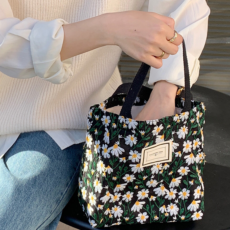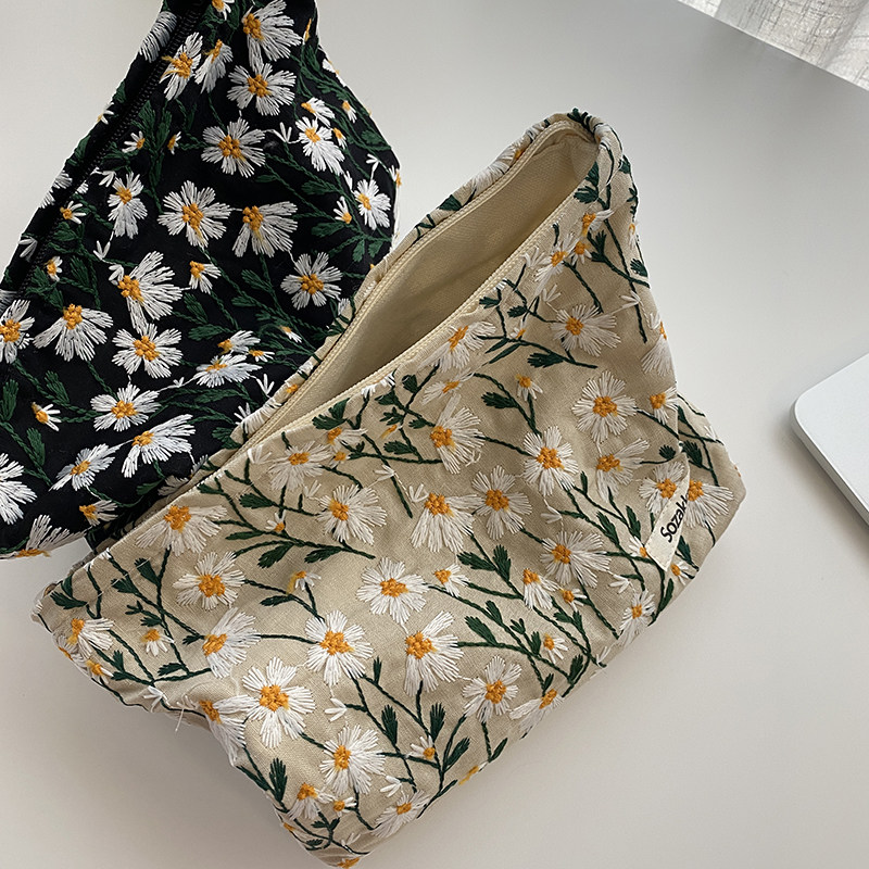 Small White Rabbit a few art embroidery Chrysanthemum Pen Bags Ins Japan-ROK Department Girls Students Large-capacity collection of Bag Writing Case