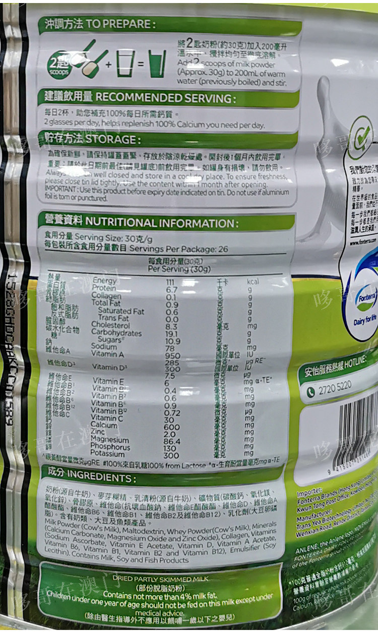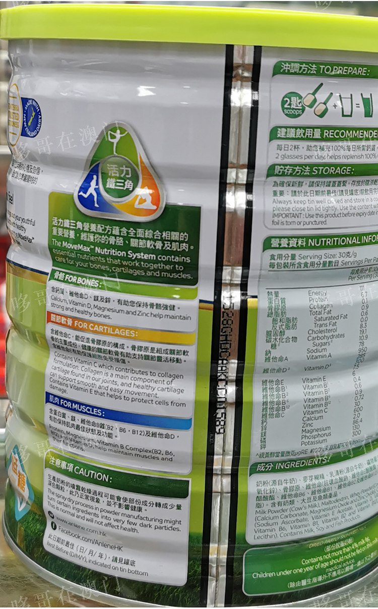 Macau Port Version Angyi Low Sugar Milk Powder Low Fat Middle Aged High Calcium 800 gr Elderly Nutritional Bone Joint