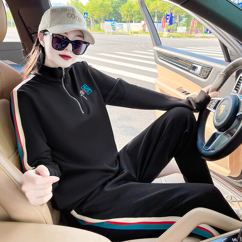 Sports suit female autumn 2021 new temperament goddess age - reduced fashion casual suit running suit is slim two pieces
