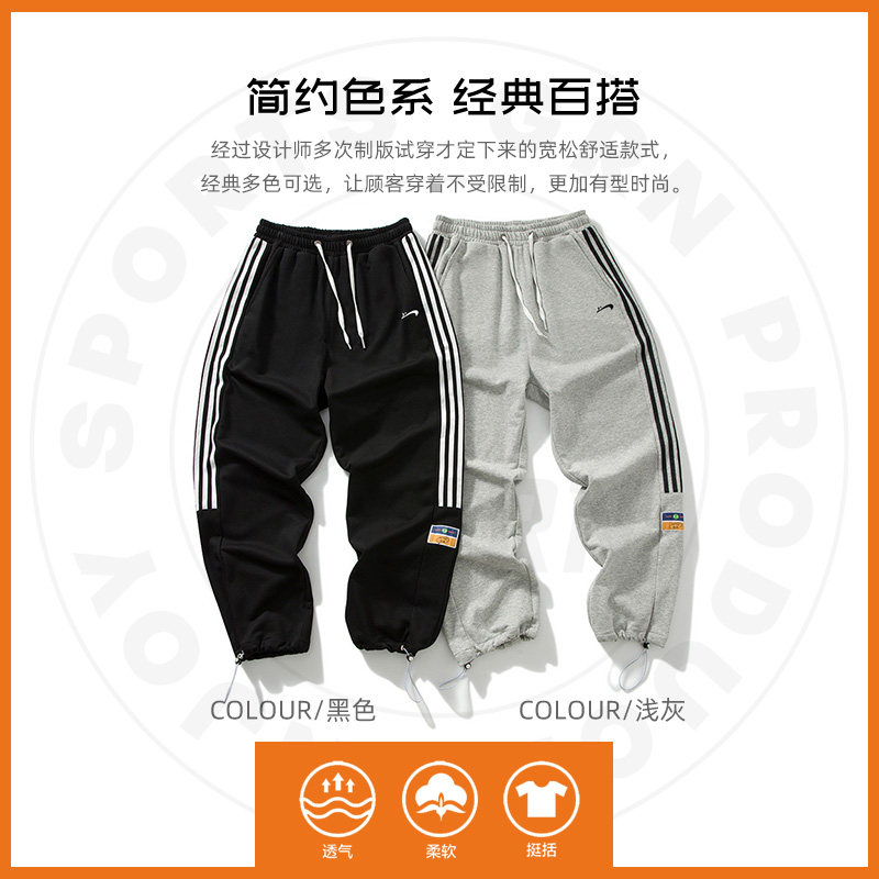 Noble Bird Three Stripes Sports Pants Men's Spring New Striped Breathable Casual Cotton Trousers Bundle Feet Running Pants