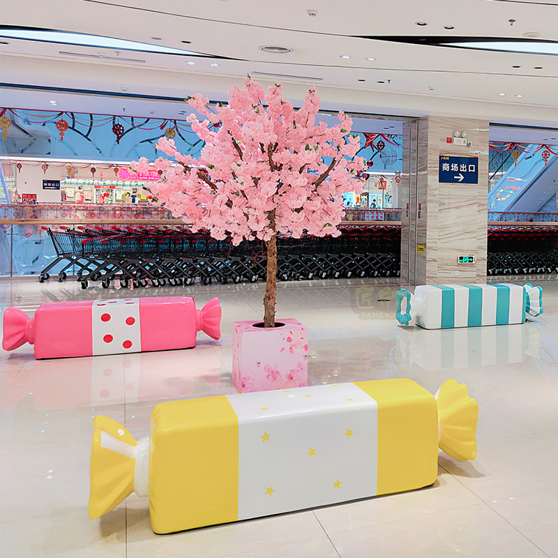 Fiberglass leisure chair shopping mall kindergarten cartoon creative candy shape seat children's public rest area sitting stool