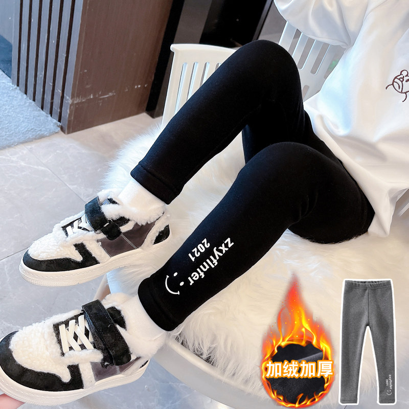 Girls plus fleece pants integrated fleece children's clothing autumn and winter leggings girl baby trousers outerwear thin fleece sweatpants