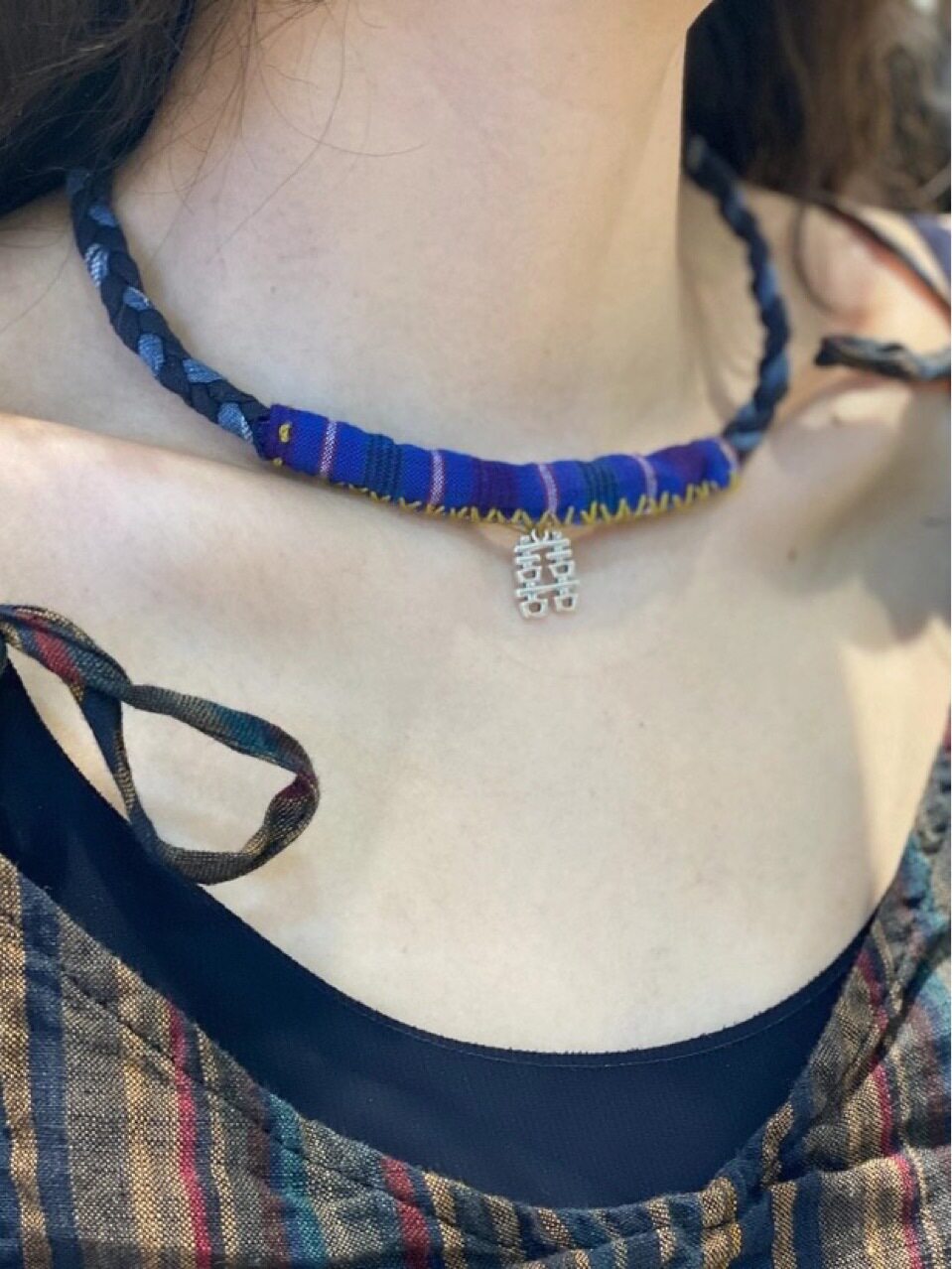 Cotton and linen 2021 new all-match necklace blue dyed plant dyed necklace ethnic style temperament collarbone chain