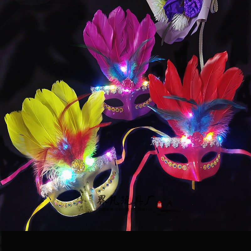 Luminous Feather Mask Large Red Light Feather Mask PINK GLOW FEATHER MASK YELLOW LUMINOUS FEATHER MASK BLUE LUMINOUS FEATHER MASK MIX LAP RANDOM LUMINOUS FEATHER MASK PURPLE LUMINOUS FEATHER MASK PINK RED FEATHER MASK PINK