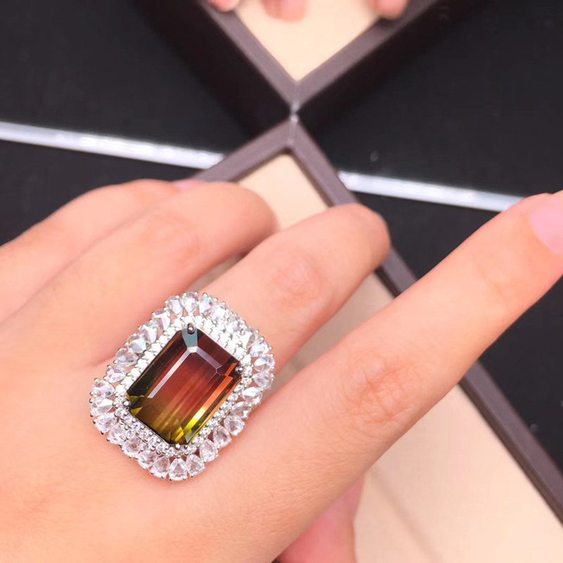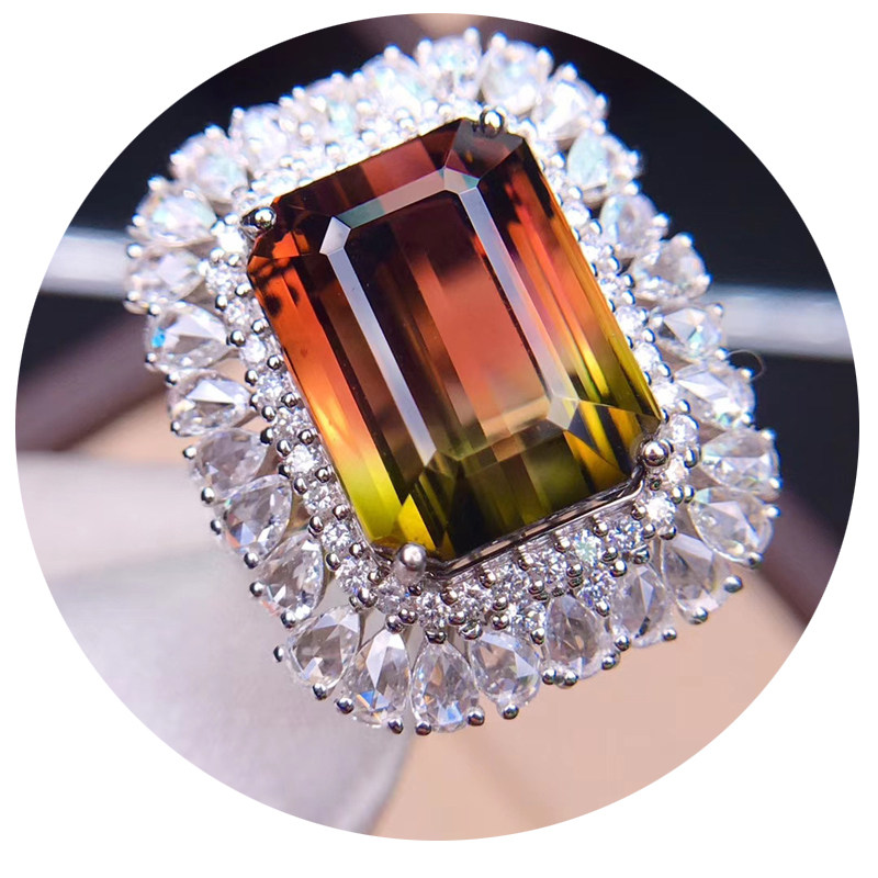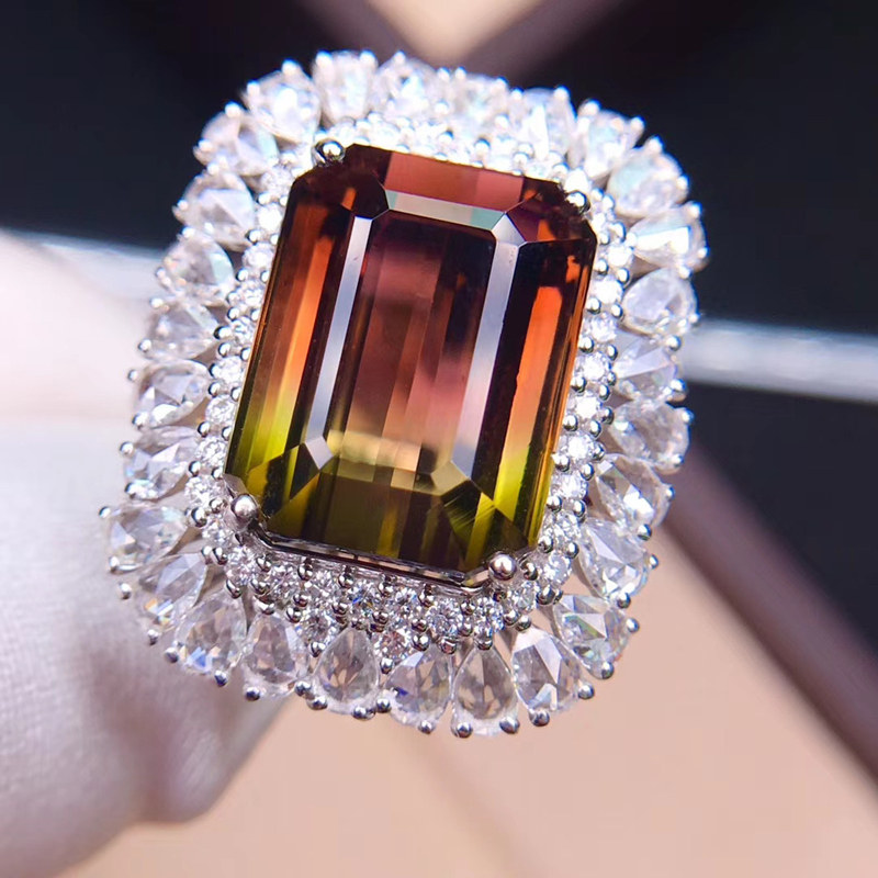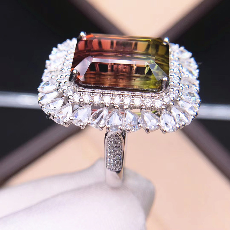 12 2 carat large natural watermelon tourmaline ring 18k gold inlaid with diamonds can be changed for free