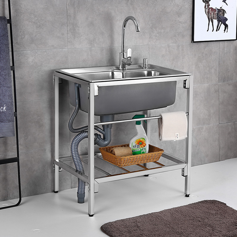 Kitchen sink thickened stainless steel wash basin large single sink with bracket sink sink sink with rack