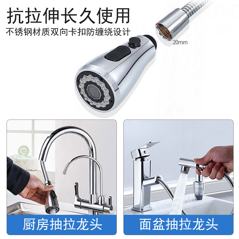 Pull-out kitchen basin cold and hot water faucet stainless steel hose bathtub disassembly telescopic faucet water pipe 1 5 meters