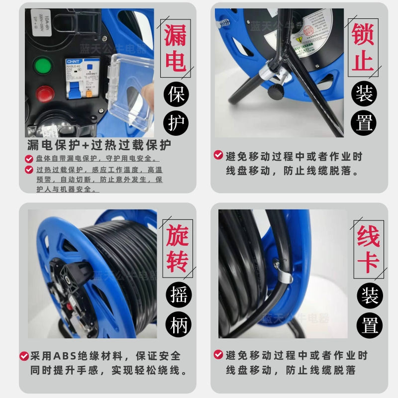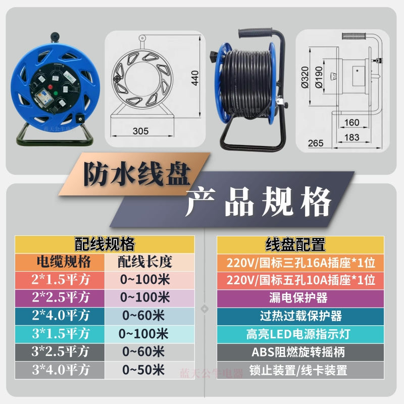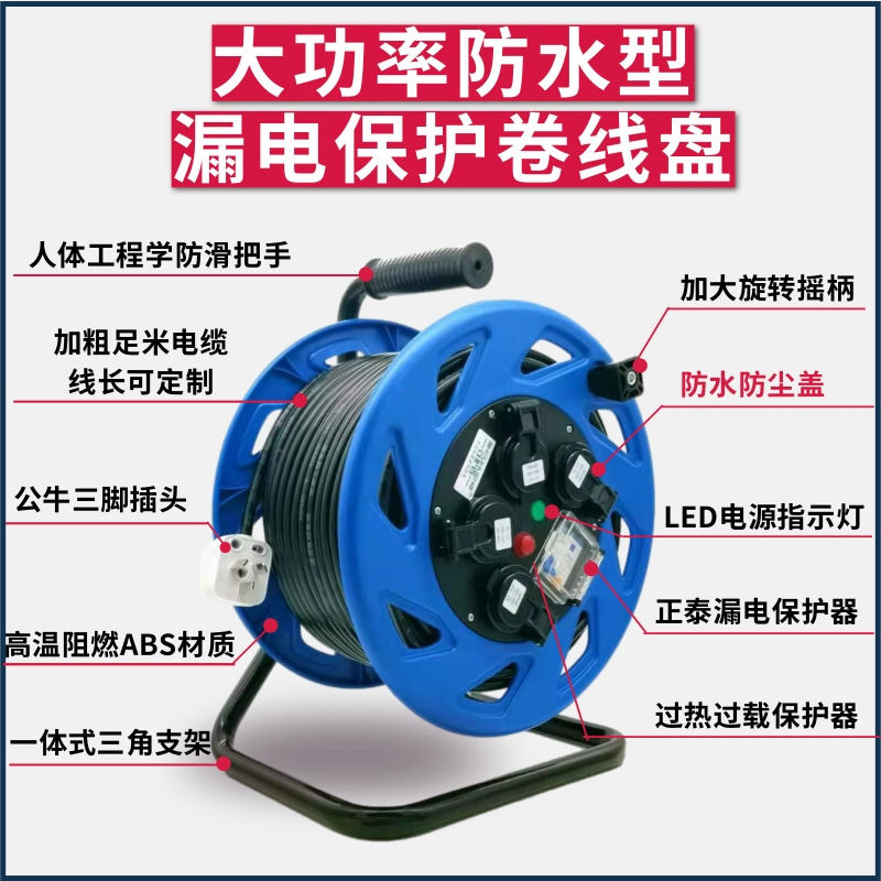 Waterproof reel 16A cable reel socket plastic take-up reel spool 30m50m high-power mobile reel empty reel