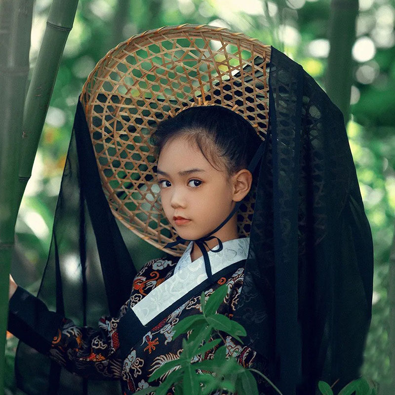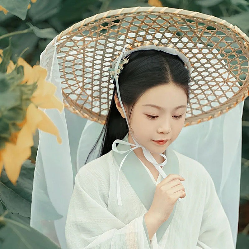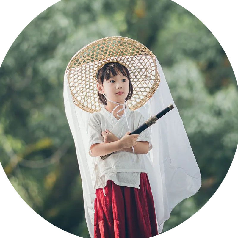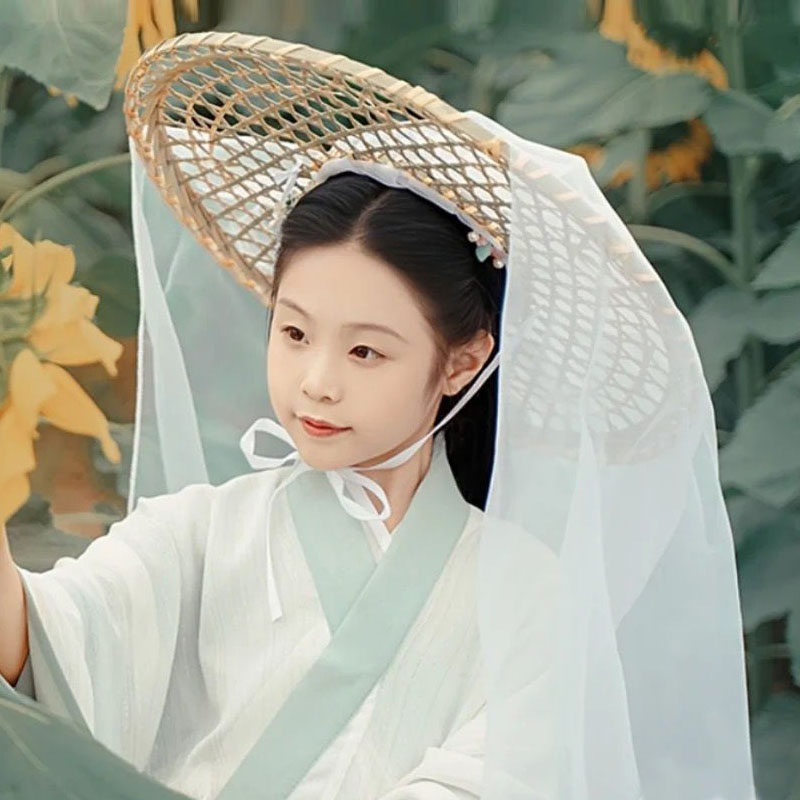 Hanfu antique style hat bucket with yarn male and female chivalrous guest ancient assembly ornament children's photography props bamboo woven hat veil