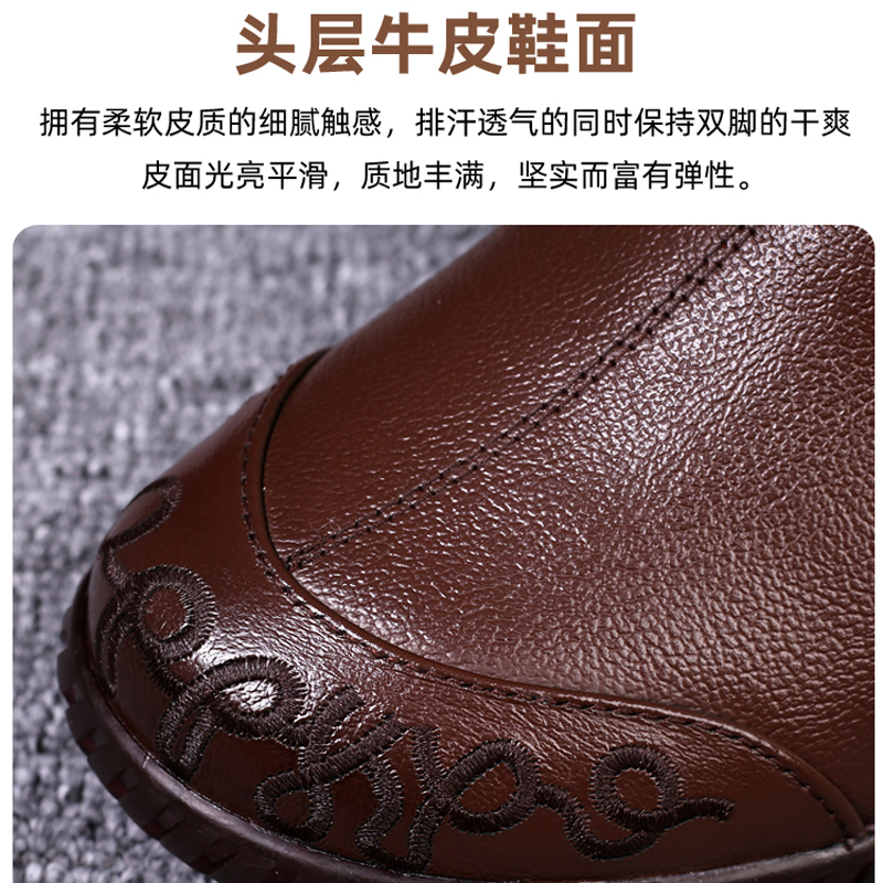 Genuine Leather Wool Seniors Cotton Shoes Women Winter Plus Suede Thickened Softbottom Short Boots Old Grandma Warm Non-slip Mom Shoes