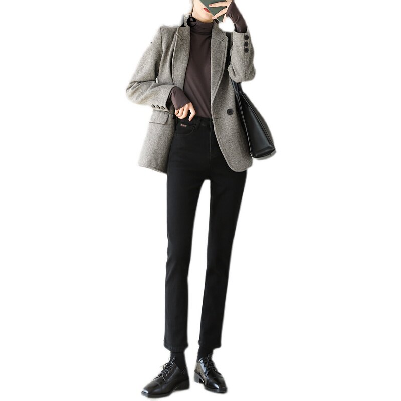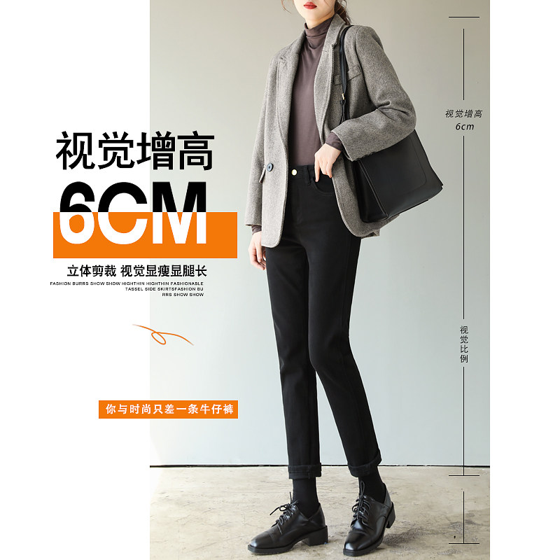 Lashabel Black Jeans in 2022 new spring and autumn loose small tube plug tube plus trousers