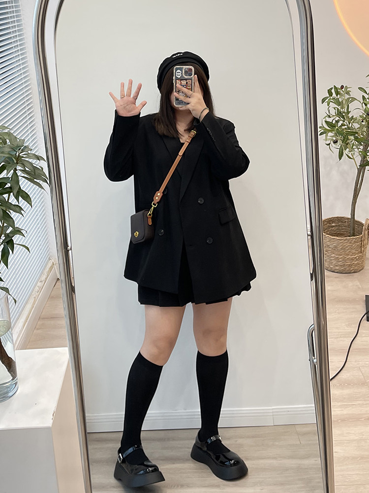 Wanwan Home Microfat Increase Code Fat mm Temperament Suit Jacket Woman Spring Autumn Season Loose and Lean Casual West Suit Blouse