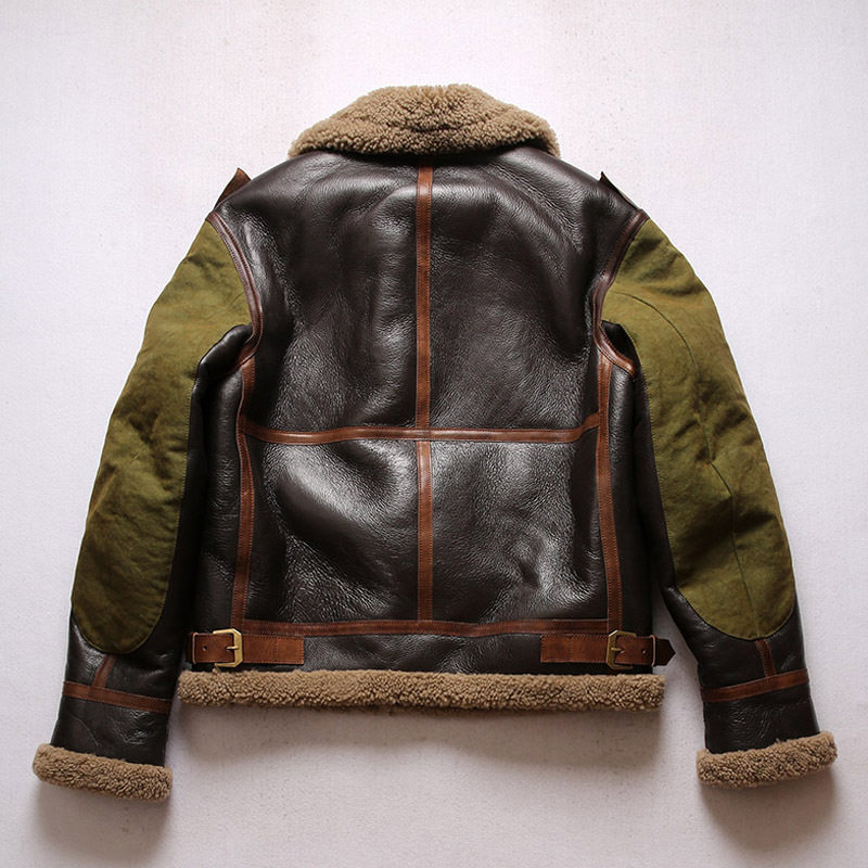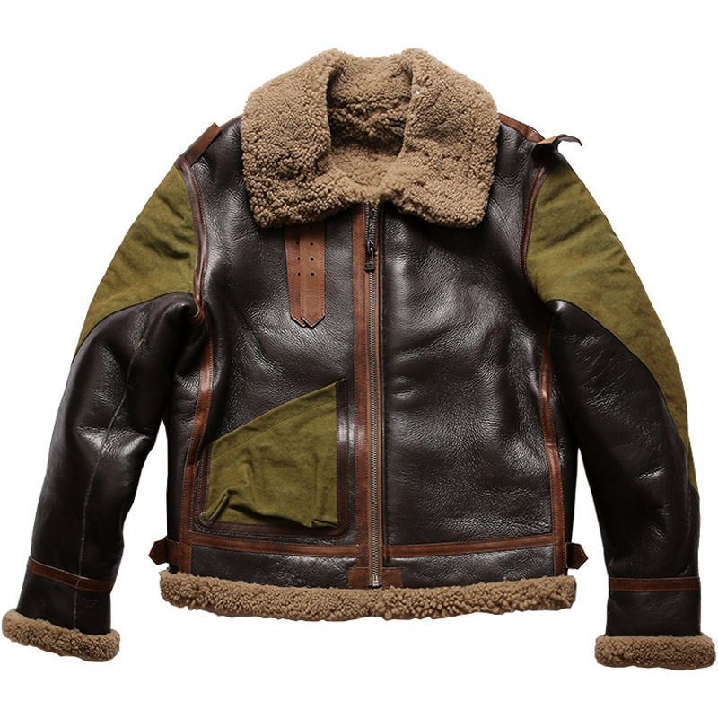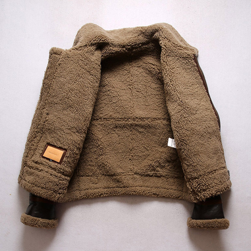 B3 Air Force Fur All-in-One Men's Lapel Short Motorcycle Leather Leather Jacket Flight Jacket Staff Leather Jacket Large Size Coat Tide