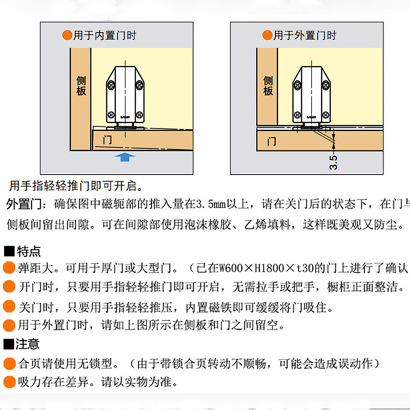 Wardrobe door bouncer push-type door suction magnetic touch free handle invisible door bouncer cabinet door outside suction strong magnetic touch beads