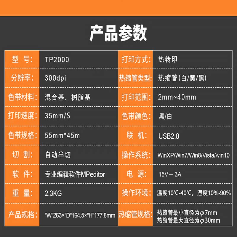 Master's TP2000 wide Bluetooth thermal shrink tube printer Automatic full-cut thermal transfer stroking machine φ 7-3 0 mm