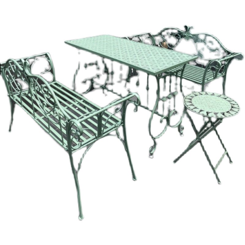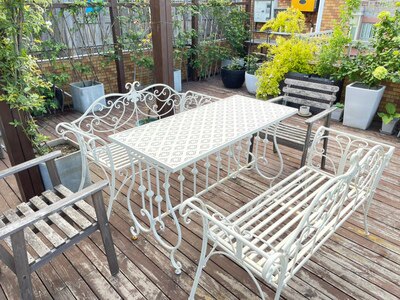 Long table leisure open-air balcony garden courtyard cafe milk tea shop indoor iron table and chair combination three-piece set